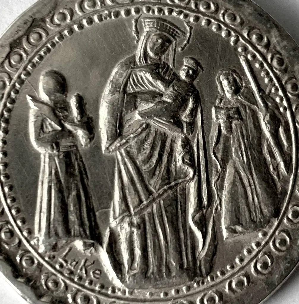 About the Virgin of ChiquinquiráVirgin of Chiquinquirá, carrying baby Jesus and a marshal cane on his hand.On her sides, San Antonio de Padua, and Saint Andrew, apostle, with the X-shaped cross, sign of his martyrdom..Her Story Dominican friars carried evangelization expeditions into the central region of Colombia. In 1560 Antón de Santana, Spanish gentleman obtained commission to build a house with different uses, the administration of settlers, indigenous people and slaves; he further build a chapel for religious services in Suta, Fray Andrés Jadraque, saw the need to put a painting of the Virgen del Rosario in the chapel. Alonso de Narváez, Spanish painter from Tunja, in Boyacá, was asked to do it. He paint the image of San Antonio next to the Virgin for being the first patron of him, and San Andrés, patron of the friar who had ordered it on her sides.From 1562 to 1574, the painting remain in the chapel, as a result of the humidity, the image was deleted, and was taken to the town of Chiquinquirá, abandoned in an oratory.In the year 1586 María Ramos, a local woman, knowing that the canvas had the image of the Virgin Mary, prayed daily asking the Virgin to manifest herself, on December 26, 1586, an indigenous woman named Isabel together and her little son, passing by, shouted "look, Look Madam..." When she directed her gaze to the painting, it shone the unrecognizable image, as its original colors and shine. Since then the devotion known as "Our Lady of Rosario de Chiquinquirá" began.After a strong earthquake in 1785, anew Basilica was build, and transferred the image of the Virgin in 1823. Since then, she is the patron from Venezuela and Colombia. Pure SilverWeight : 20 gramsMeasurement : 37 mm diameter, 1.5 mm thickness