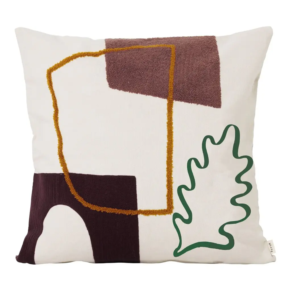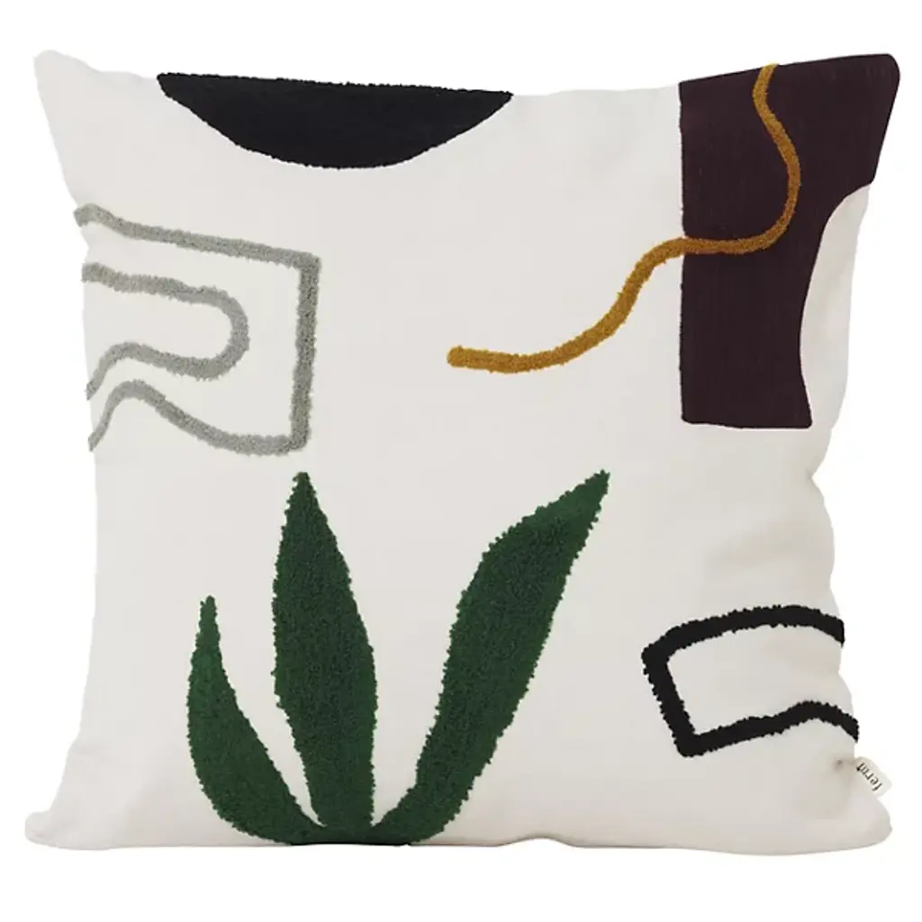 With imagery found in the mystic atmosphere of oasis and desert paradises, the Mirage series turns objects into abstract shapes and beautiful forms. The large cushions are made of cotton and come in four versions of nature-inspired artwork, held in deep and contemporary colors.