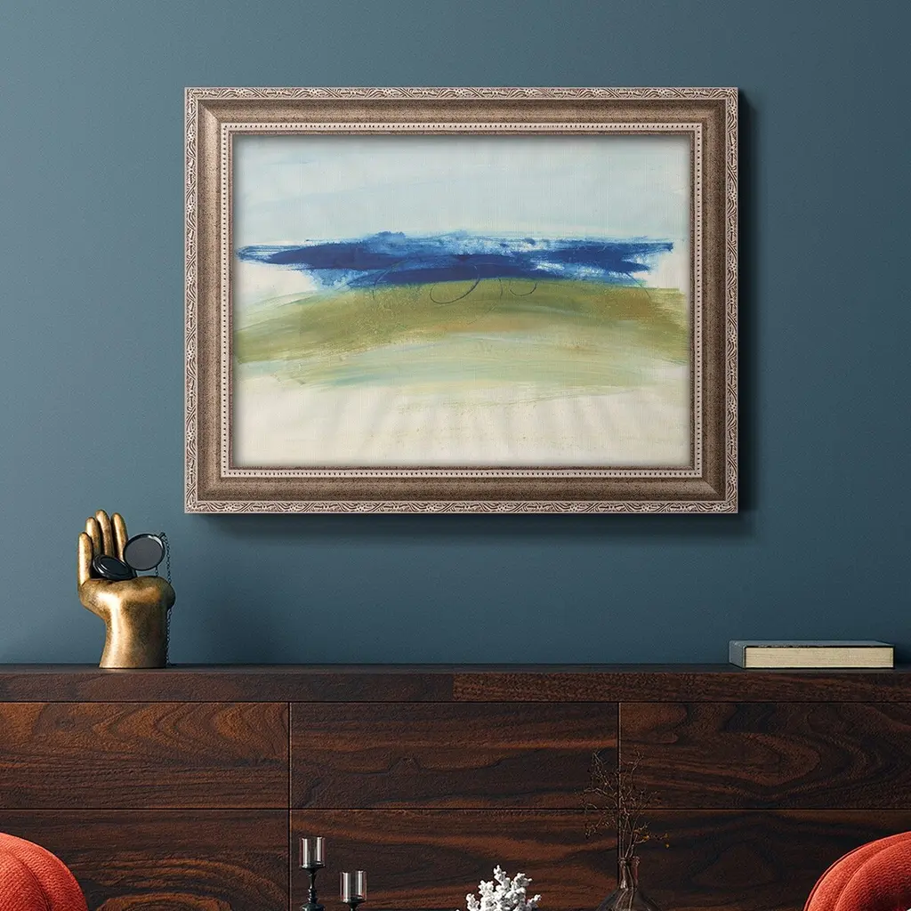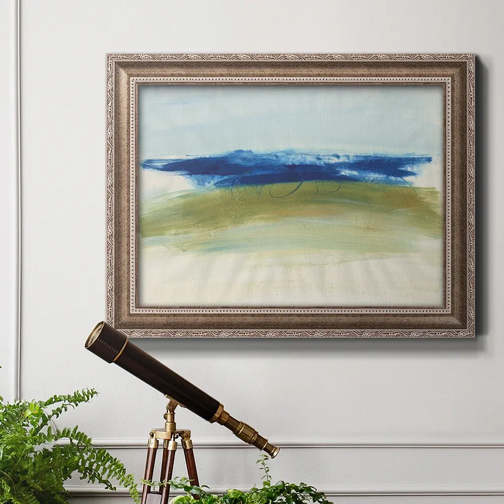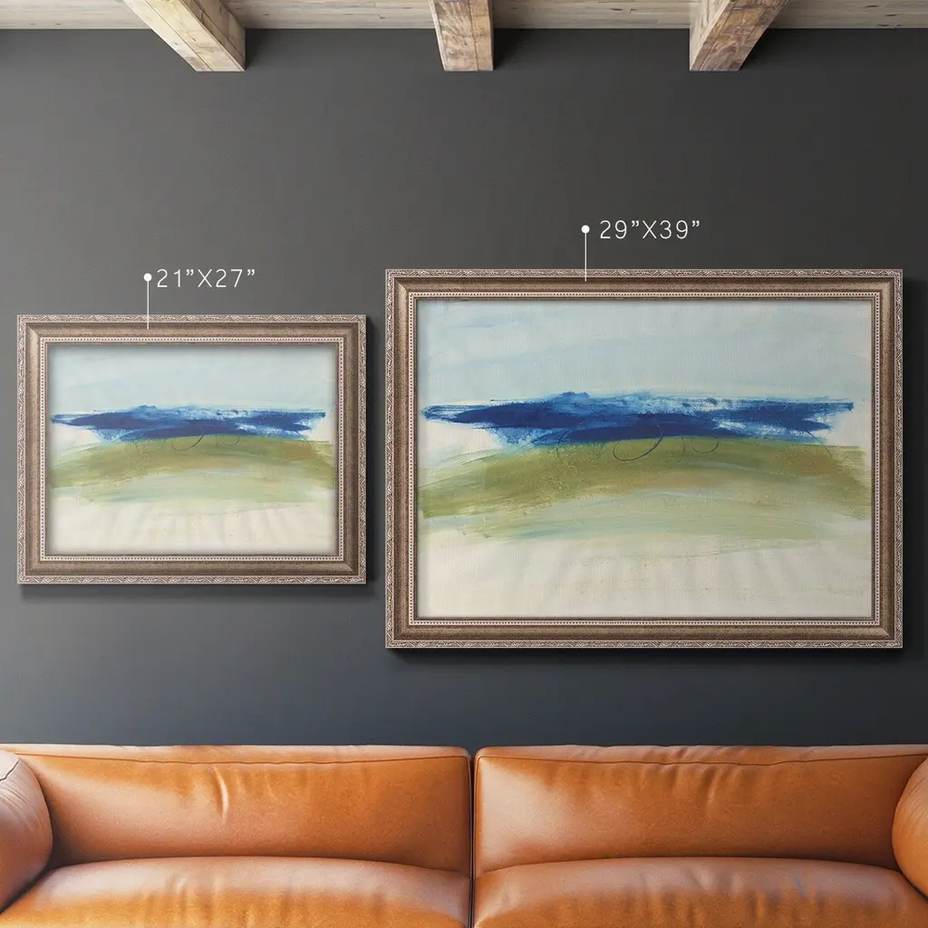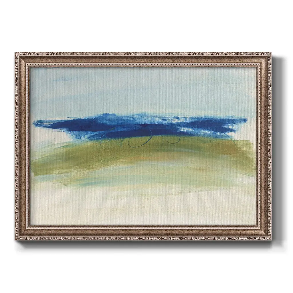 Mirages I Premium Framed Canvas- Ready to Hang A Premium Framed Canvas created to last. Framed in distressed wood and available in an array of sizes and colors Featuring a beveled a solid wood stretcher bar, each piece comes ready to hand 3 SIZES AVAILABLE 16''X20'' - Overall Size 18'X27'' - Overall Size 24''x36'' - Overall Size Each piece is made to order. Each piece comes with hanging hardware. Made in the USA Ready to Hang Giclee Paper Print Acrylic Glass Beveled Matt Board