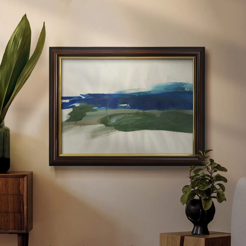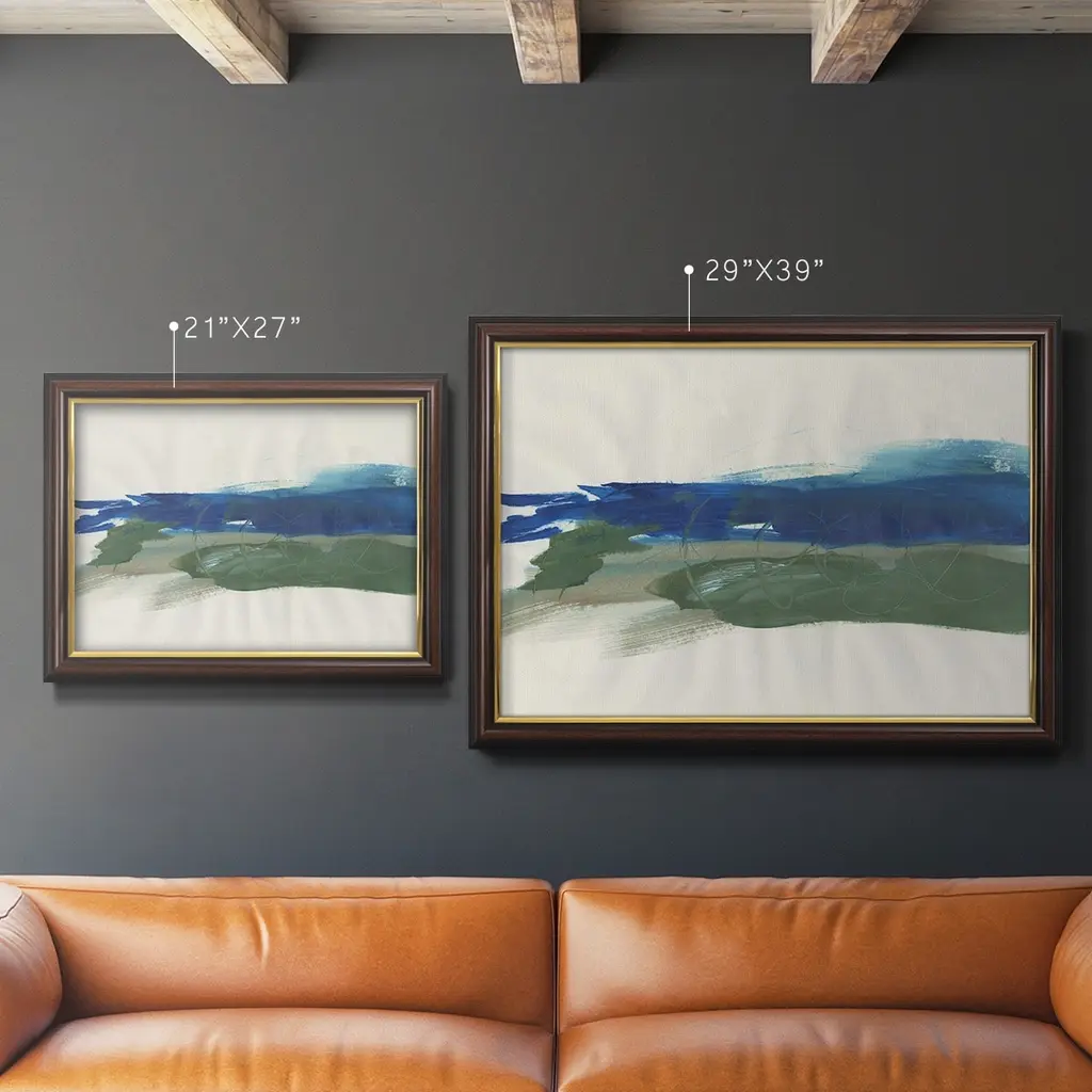 Mirages III Premium Framed Canvas- Ready to Hang A Premium Framed Canvas created to last. Framed in distressed wood and available in an array of sizes and colors Featuring a beveled a solid wood stretcher bar, each piece comes ready to hand 3 SIZES AVAILABLE 16''X20'' - Overall Size 18'X27'' - Overall Size 24''x36'' - Overall Size Each piece is made to order. Each piece comes with hanging hardware. Made in the USA Ready to Hang Giclee Paper Print Acrylic Glass Beveled Matt Board