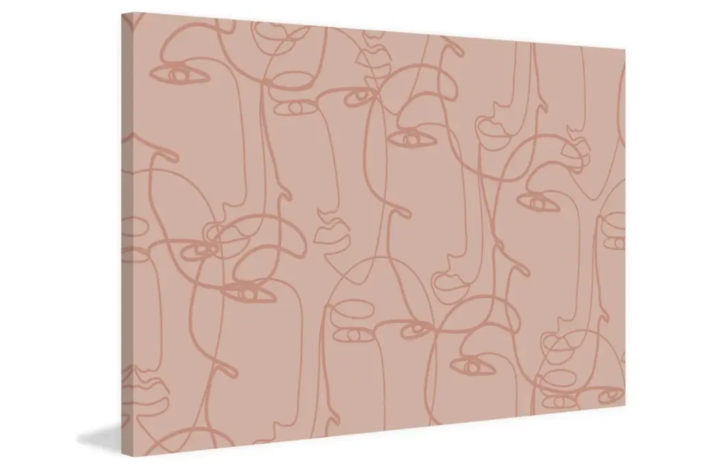 This abstract print is perfect for bohemian and mid-century modern spaces, featuring a collection of overlapping face outlines in a muted pink color scheme. Proudly made in the USA, this piece is printed on canvas before it's stretched over non-warping wooden bars for a gallery-wrapped look. With wall-mounting hooks included, this artful accent is ready to hang up as soon as it reaches your front door.Fine art canvas print from the Marmont Hill Art CollectiveProfessionally hand stretchedGallery wrapped in sustainable, non-warping woodArrives ready to hangMade in the USAIncludes a certificate of authenticity