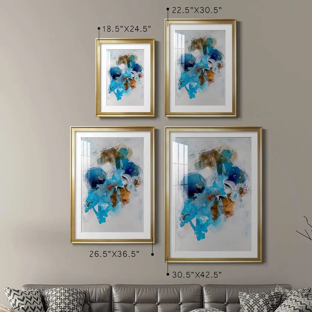 Misty Blue I Premium Framed Print - Ready to Hang A Premium Framed Print created to last. Framed in distressed wood and available in an array of sizes and colors Featuring a beveled a solid wood stretcher bar, each piece comes ready to hand 4 SIZES AVAILABLE 30.5''X42.5'' - Overall Size 26.5'X36.5'' - Overall Size 22.5''x30.5'' - Overall Size 18.5''x24.5'' - Overall Size Each piece is made to order. Each piece comes with hanging hardware. Made in the USA Ready to Hang Giclee Paper Print Acrylic Glass Beveled Matt Board