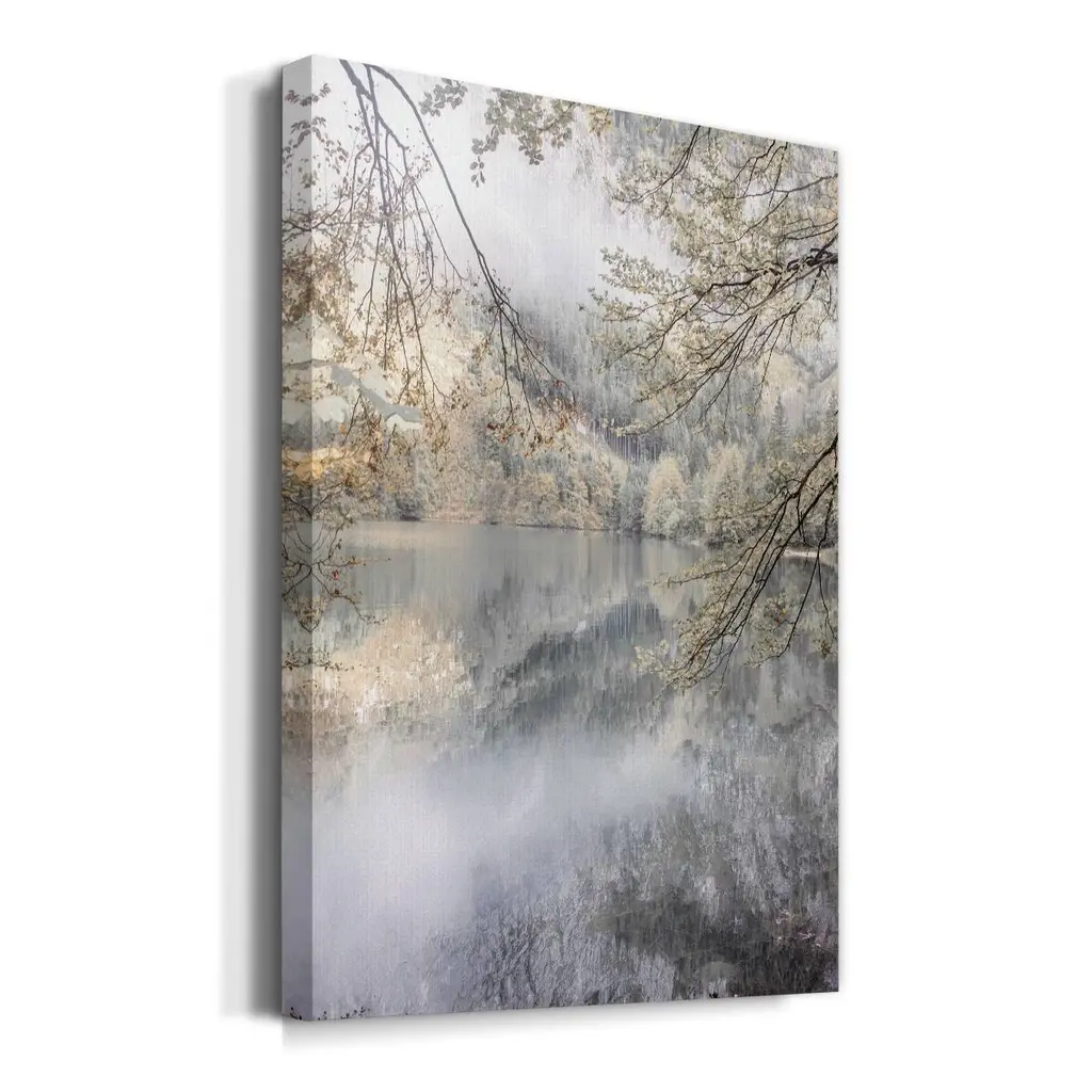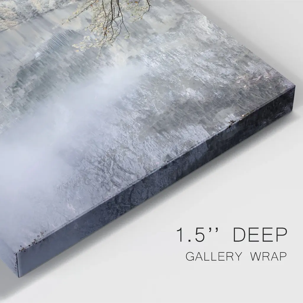 Misty Lake Premium Gallery Wrapped Canvas - Ready to Hang A premium hand stretched gallery wrapped canvas print created to last. Featuring a beveled a solid wood stretcher bar, each piece comes ready to hand 6 SIZES AVAILABLE 8''X12'' - Overall Size 12''X18'' - Overall Size 18''X27'' - Overall Size 24''x36'' - Overall Size 32''x48'' - Overall Size 40''x60'' - Overall Size Each piece is made to order. Built to Last Each piece comes ready to hang Solid wood stretcher Fade and Water resistant Made domestically