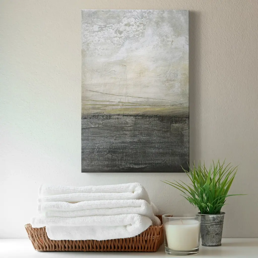 Misty Landscape I Premium Gallery Wrapped Canvas - Ready to Hang A premium hand stretched gallery wrapped canvas print created to last. Featuring a beveled a solid wood stretcher bar, each piece comes ready to hand 6 SIZES AVAILABLE 8''X12'' - Overall Size 12''X18'' - Overall Size 18''X27'' - Overall Size 24''x36'' - Overall Size 32''x48'' - Overall Size 40''x60'' - Overall Size Each piece is made to order. Built to Last Each piece comes ready to hang Solid wood stretcher Fade and Water resistant Made domestically