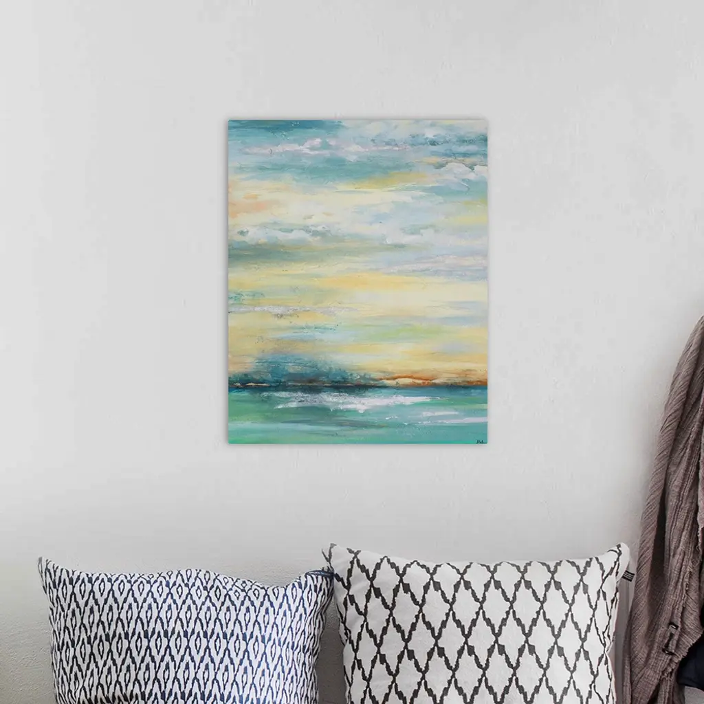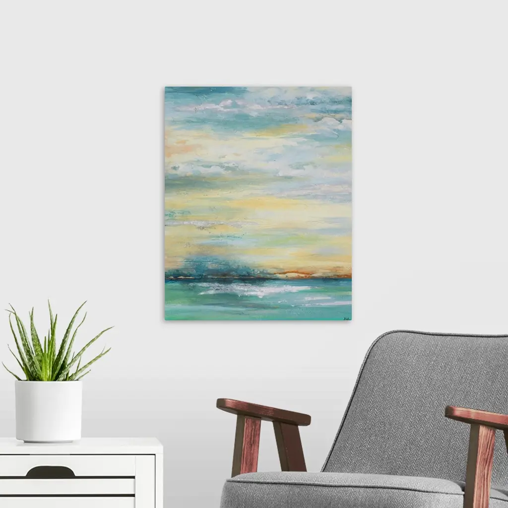 Contemporary abstract colorfield painting resembling an oceanscape.