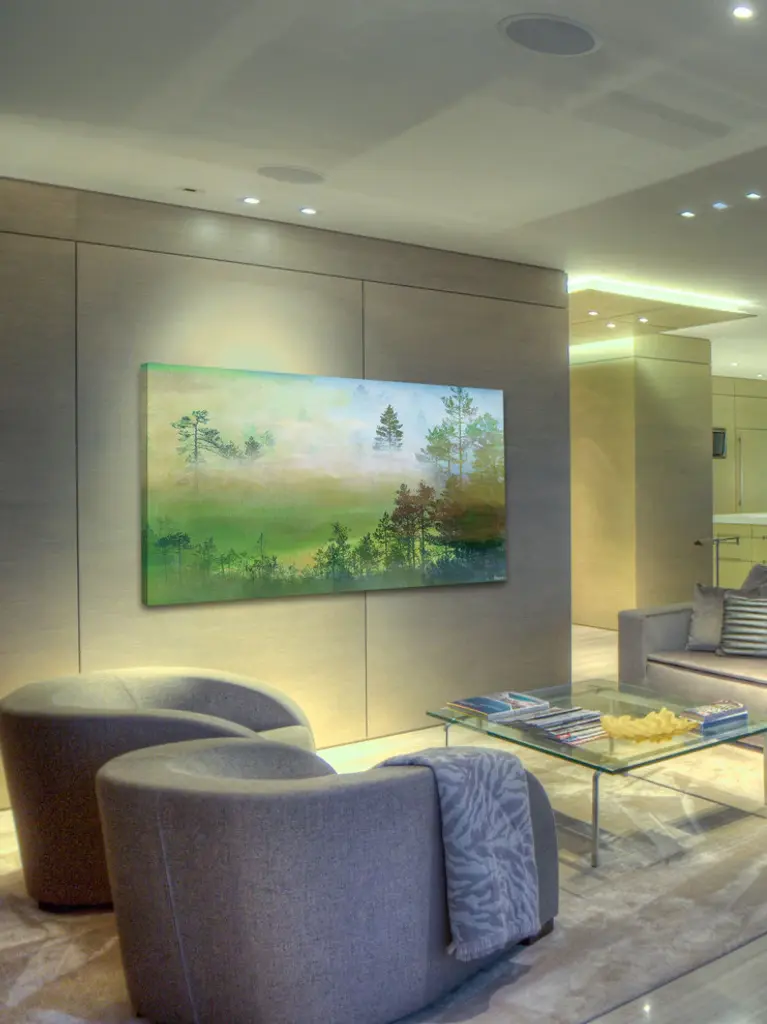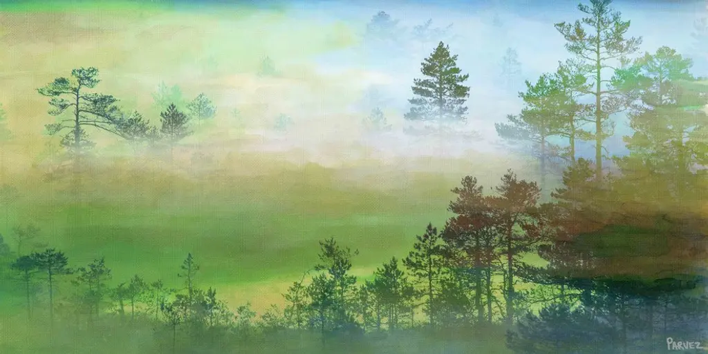 Striking and unique, the "Misty Pine Forest" Fine Art Canvas Print by Parvez Taj will bring your walls to life. Printed on canvas, this 60 inch wide by 30 inch tall contemporary artwork will make a statement in any living room, dining room, or bedroom.- Fine art canvas print by Parvez Taj- Professionally hand stretched- Gallery wrapped in sustainable, non-warping wood- Arrives ready to hang- Made in the USA- Includes a certificate of authenticity- Artist signature on the front