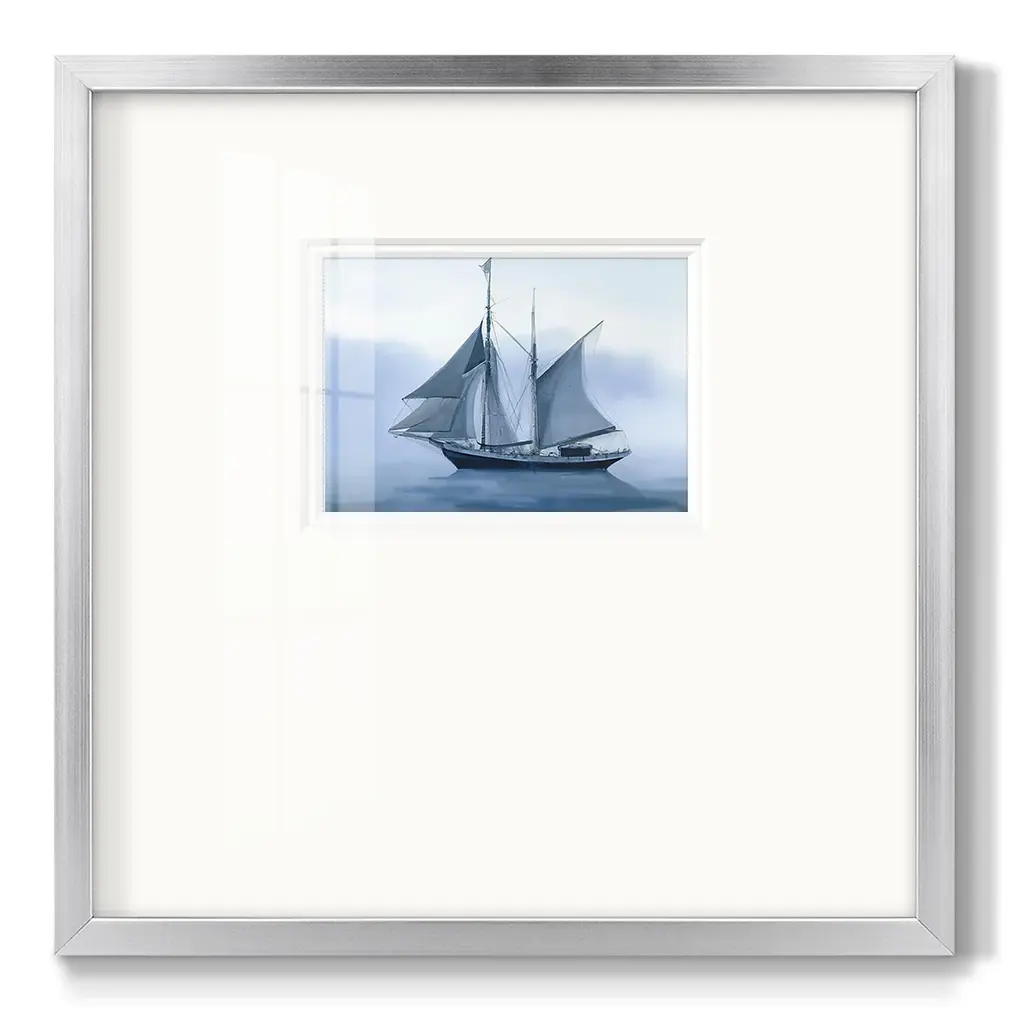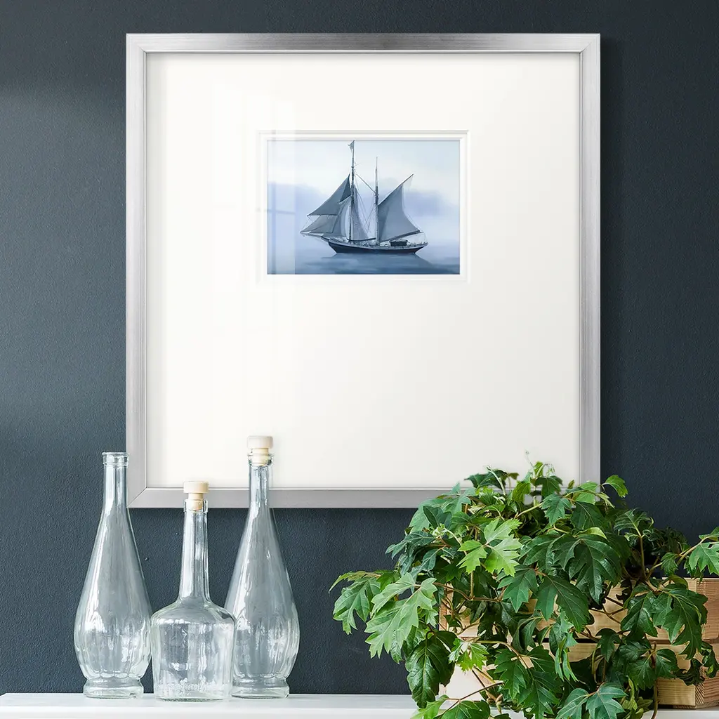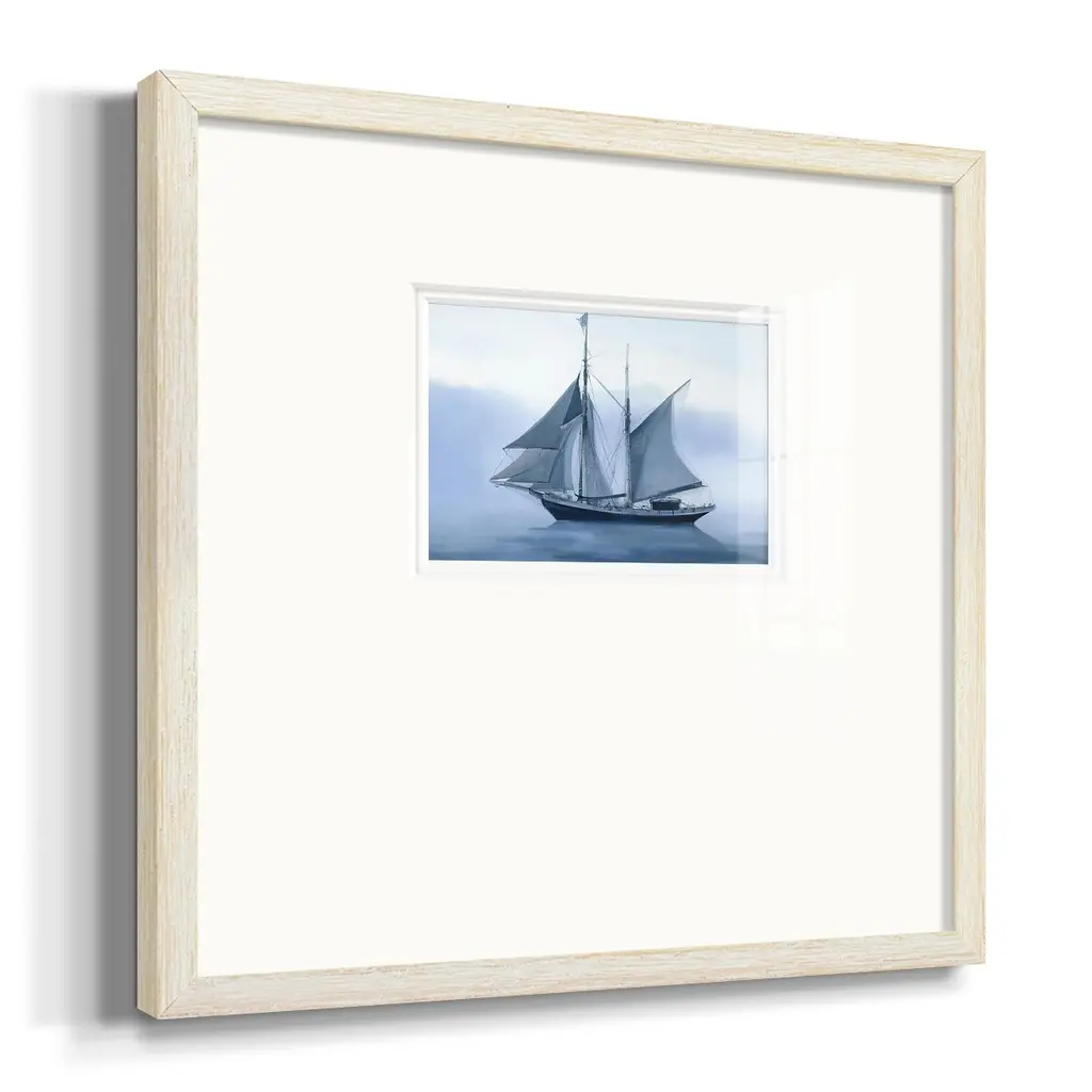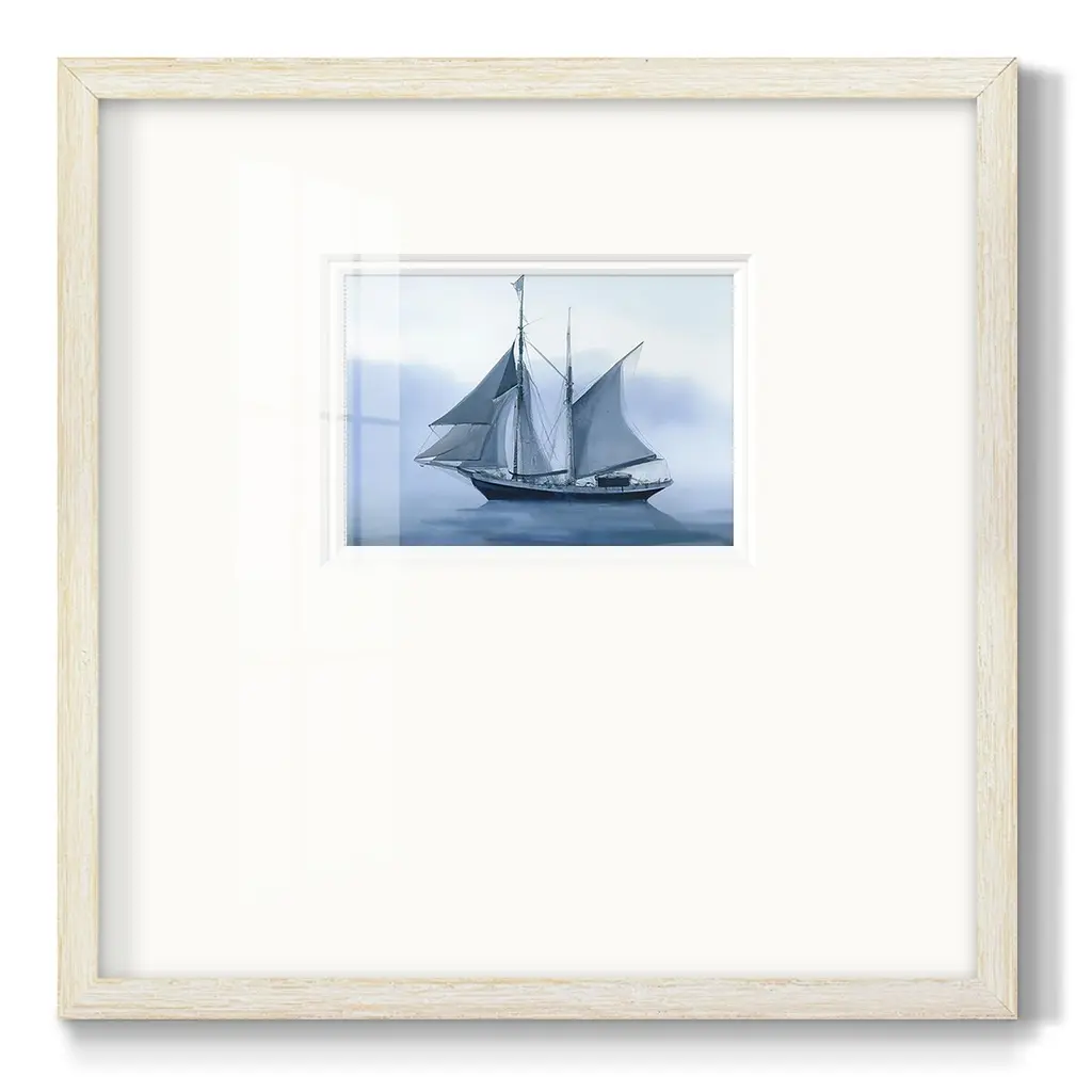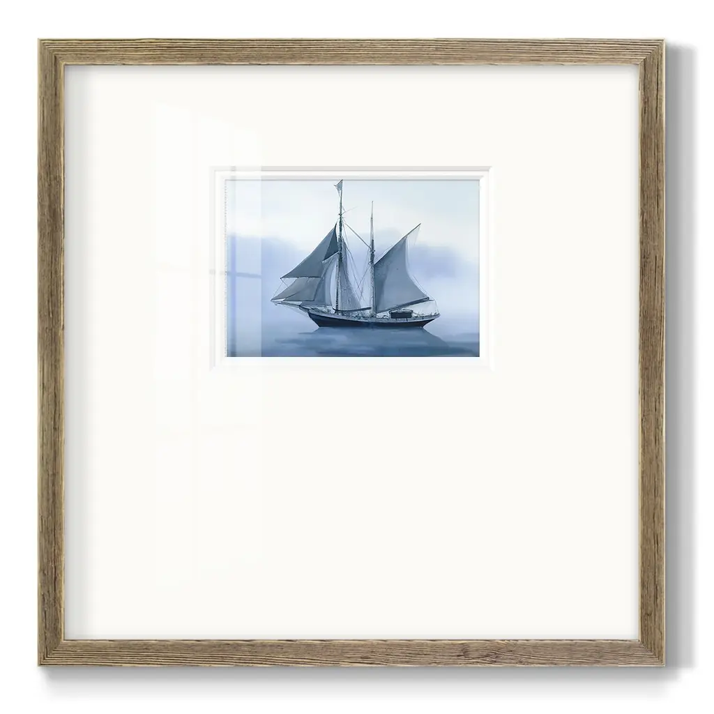 Misty SailPremium Framed Print A framed cold pressed paper print featuring superior double matting and quality frame. 2 SIZES AVAILABLE 16''X16''' - Overall Size 20''X20''' - Overall Size Each piece is made to order. Each piece comes with hanging hardware. Made in the USA Ready to Hang Giclee Paper Print Plexiglass Beveled Matt Board Double Matte Board