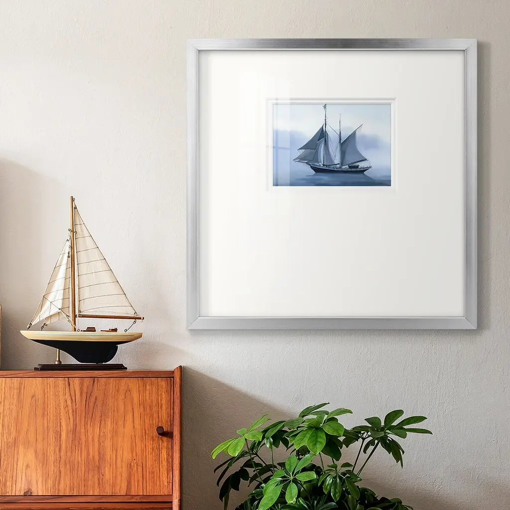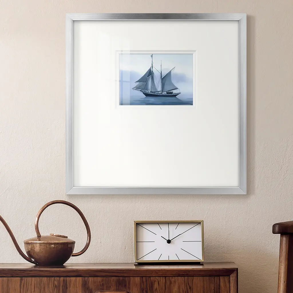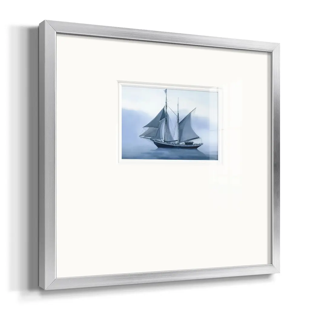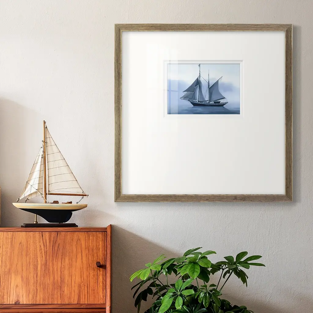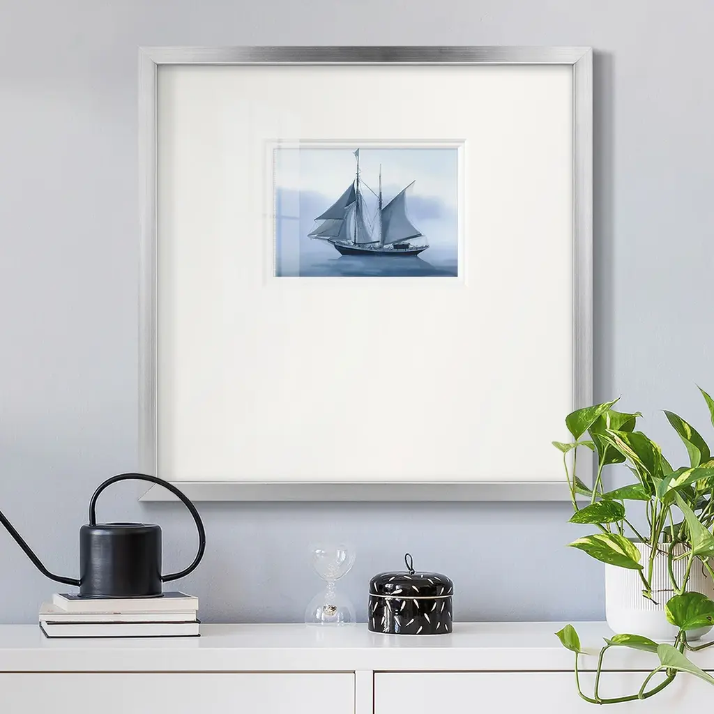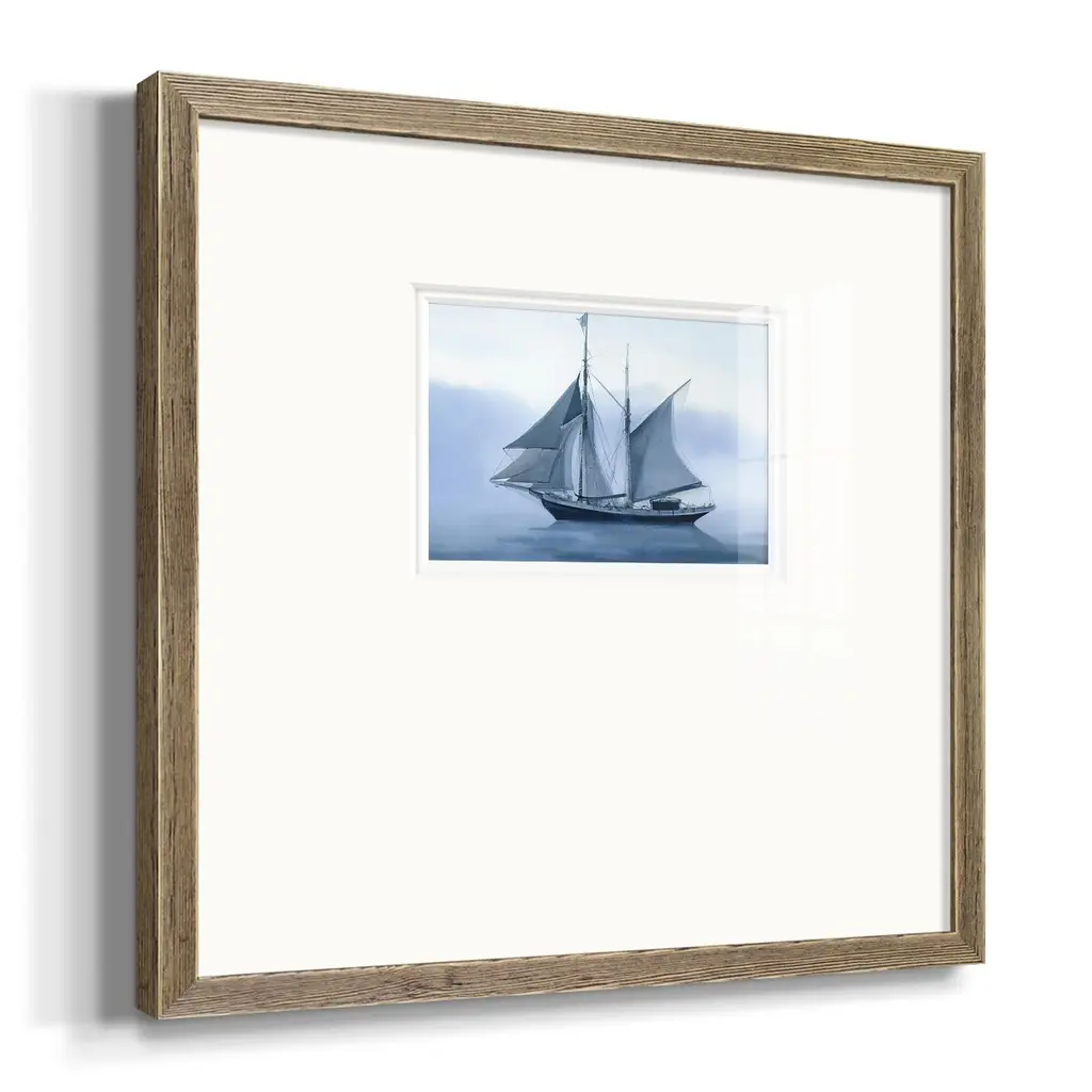 Misty SailPremium Framed Print A framed cold pressed paper print featuring superior double matting and quality frame. 2 SIZES AVAILABLE 16''X16''' - Overall Size 20''X20''' - Overall Size Each piece is made to order. Each piece comes with hanging hardware. Made in the USA Ready to Hang Giclee Paper Print Plexiglass Beveled Matt Board Double Matte Board