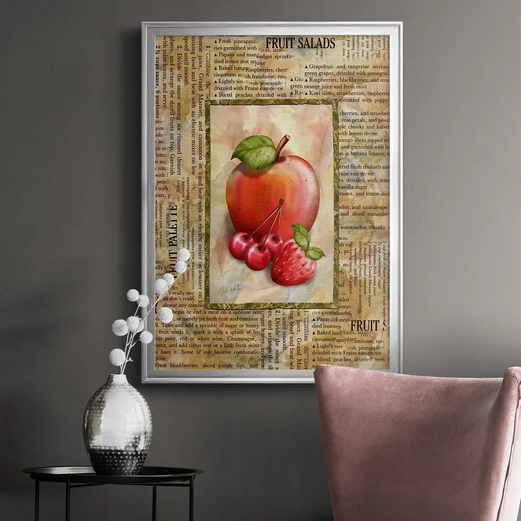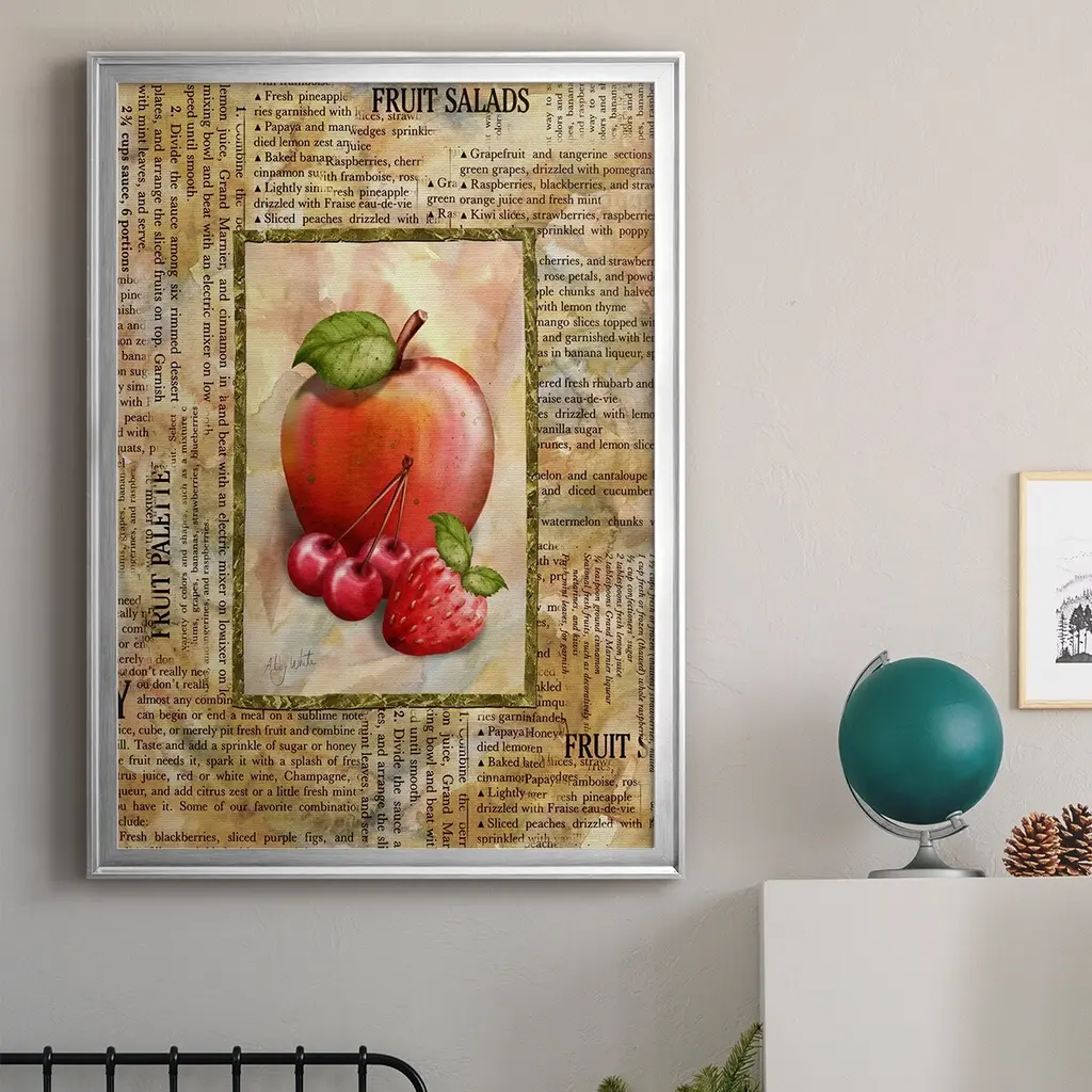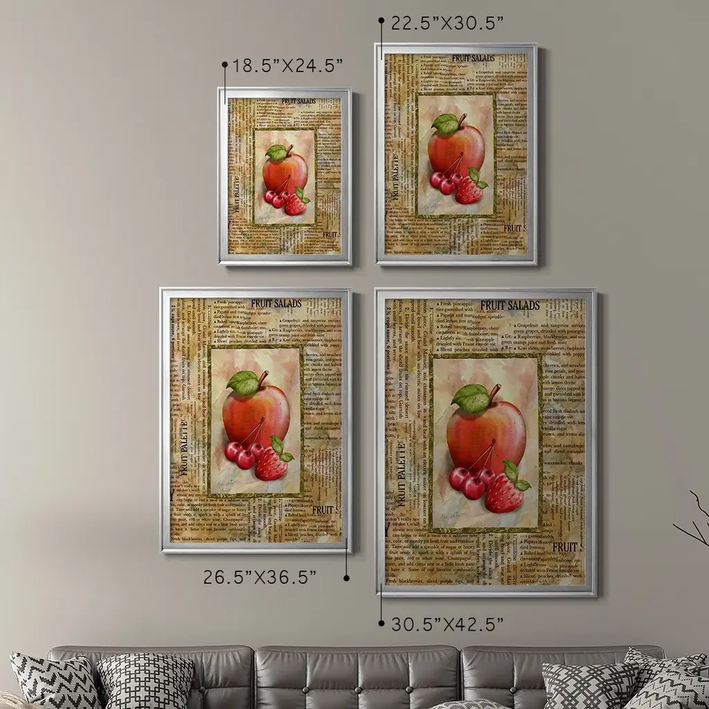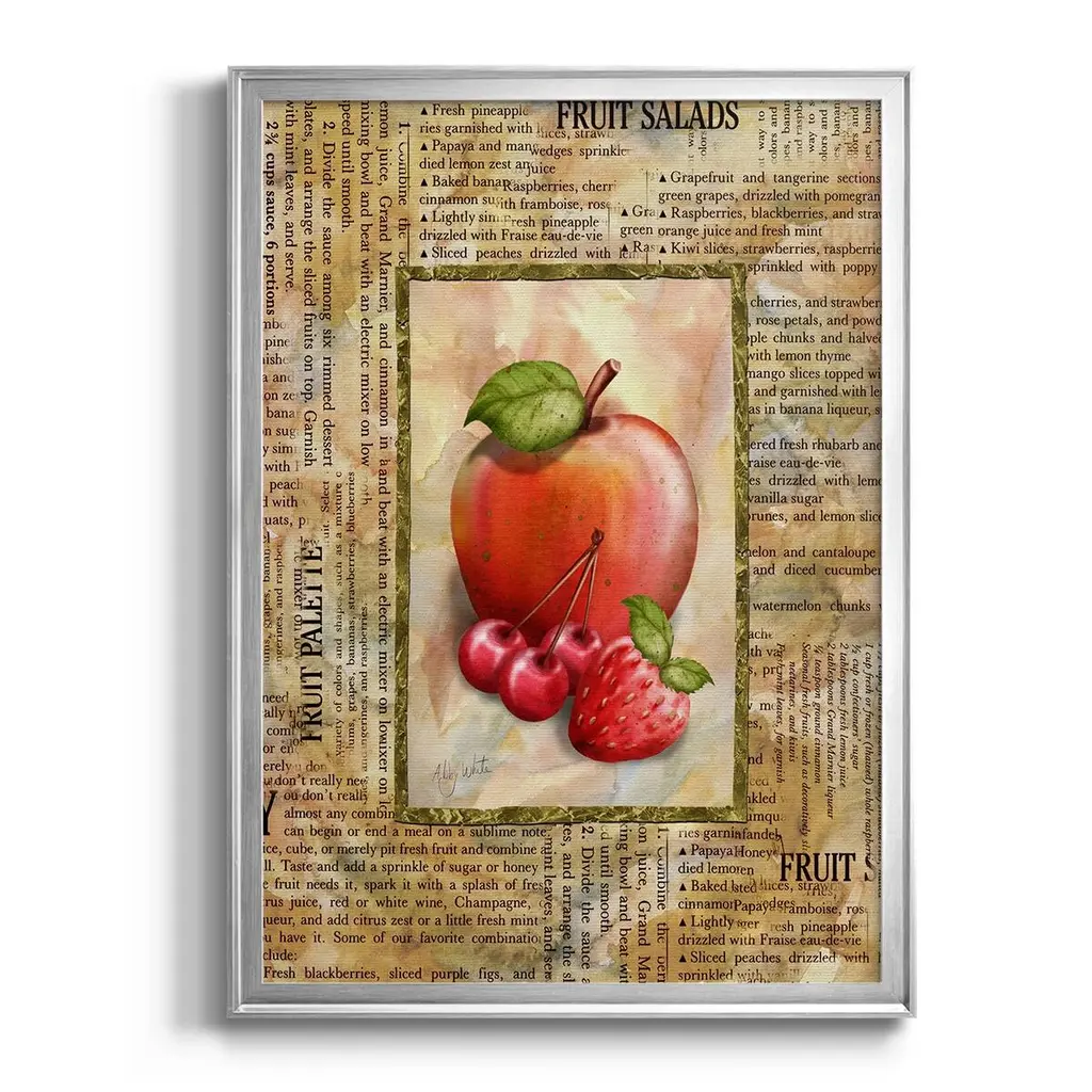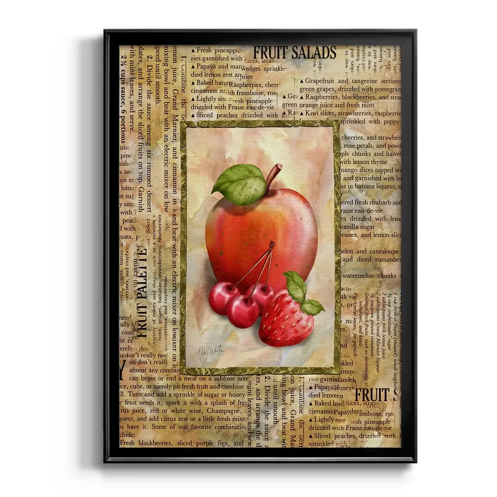 Mixed Fruit I Premium Framed Print - Ready to Hang A Premium Framed Print created to last. Framed in distressed wood and available in an array of sizes and colors Featuring a beveled a solid wood stretcher bar, each piece comes ready to hand 4 SIZES AVAILABLE 30.5''X42.5'' - Overall Size 26.5'X36.5'' - Overall Size 22.5''x30.5'' - Overall Size 18.5''x24.5'' - Overall Size Each piece is made to order. Each piece comes with hanging hardware. Made in the USA Ready to Hang