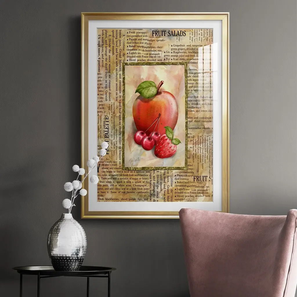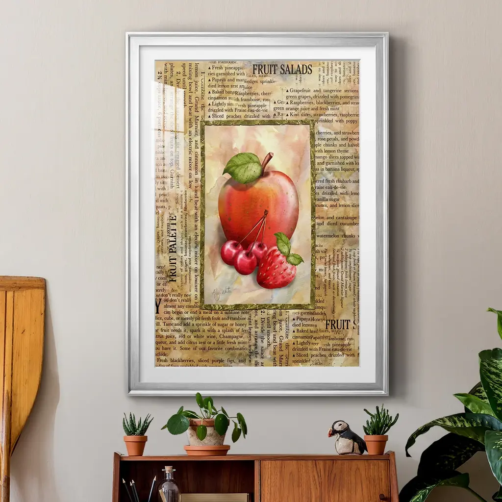 Mixed Fruit I Premium Framed Print - Ready to Hang A Premium Framed Print created to last. Framed in distressed wood and available in an array of sizes and colors Featuring a beveled a solid wood stretcher bar, each piece comes ready to hand 4 SIZES AVAILABLE 30.5''X42.5'' - Overall Size 26.5'X36.5'' - Overall Size 22.5''x30.5'' - Overall Size 18.5''x24.5'' - Overall Size Each piece is made to order. Each piece comes with hanging hardware. Made in the USA Ready to Hang Giclee Paper Print Acrylic Glass Beveled Matt Board
