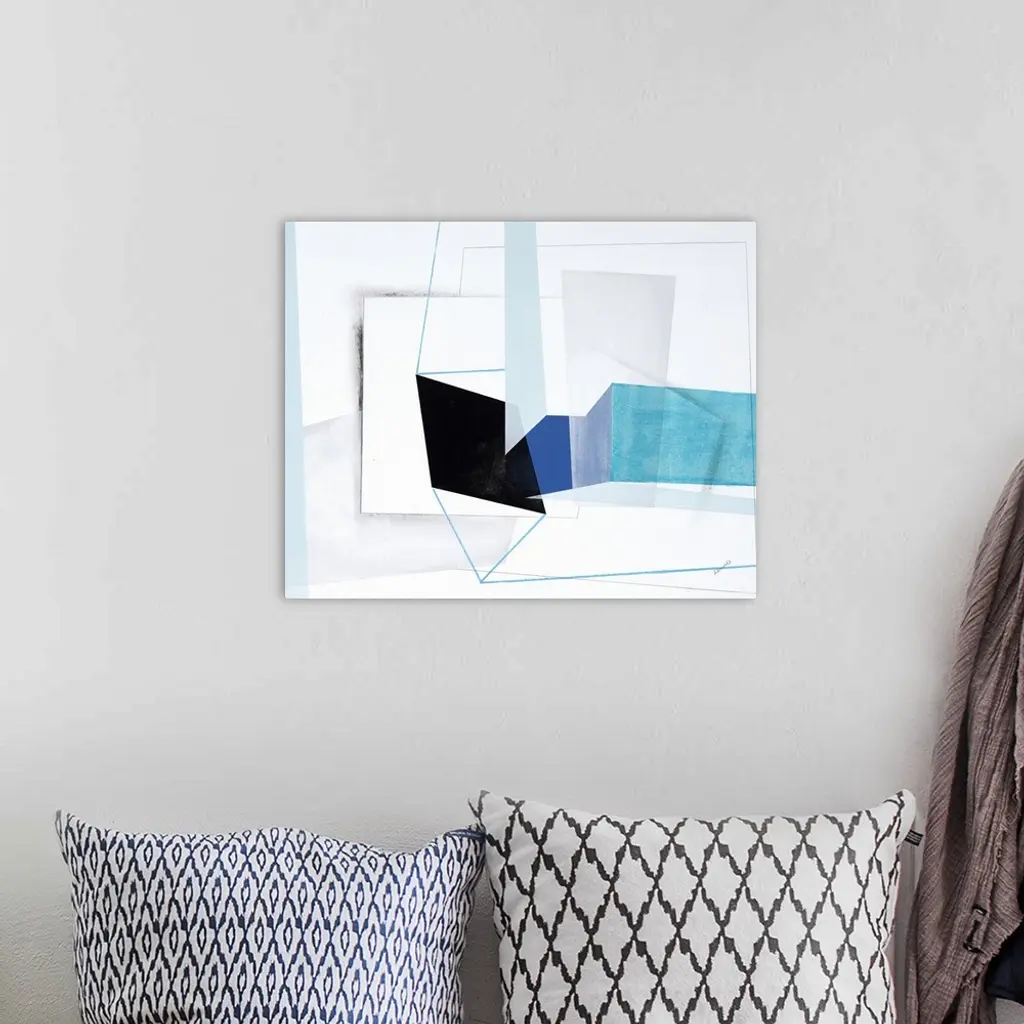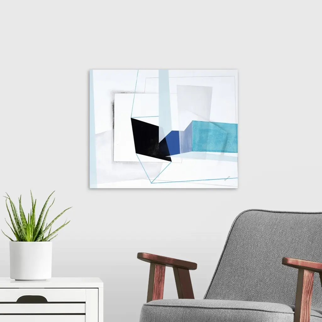 Contemporary artwork using geometric shapes and sharp lines to create an energetic, yet structured composition.