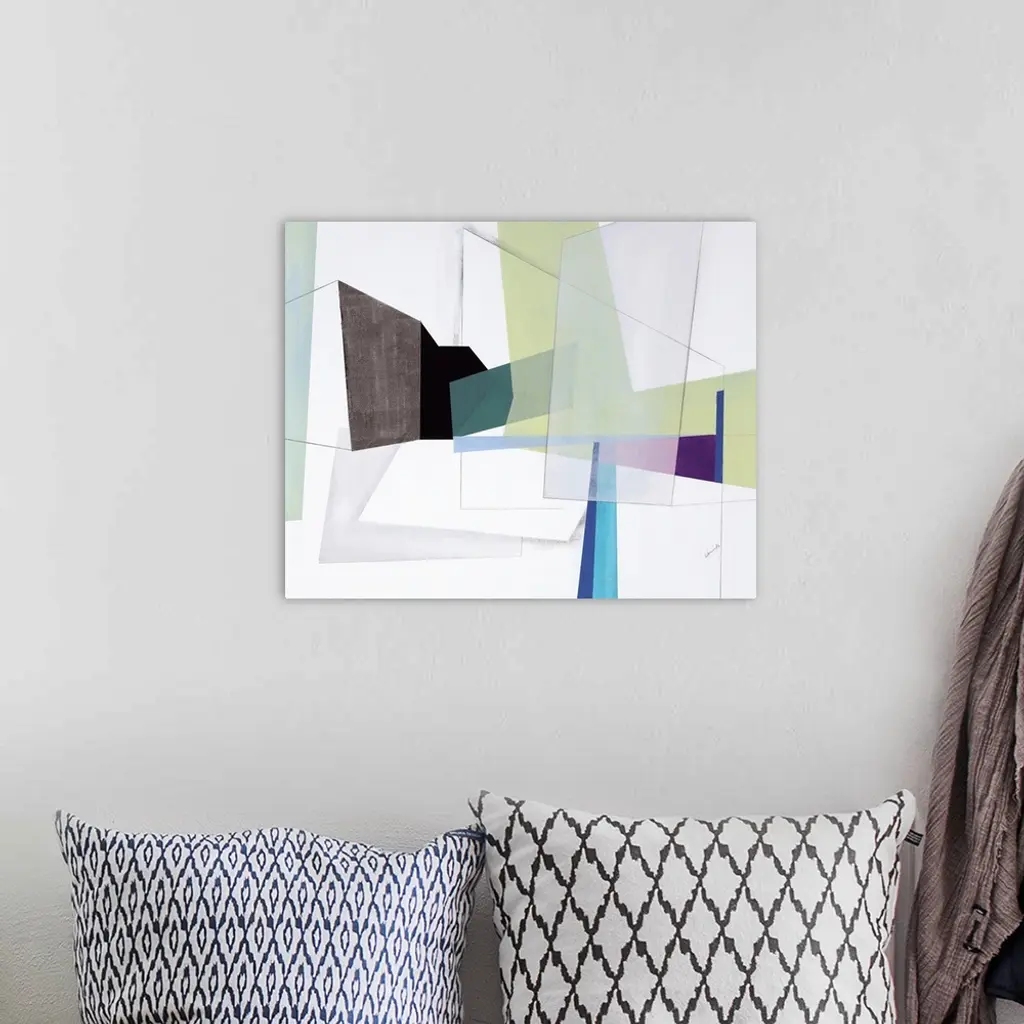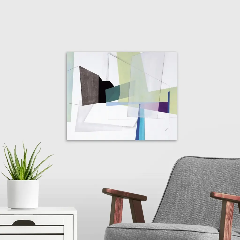 Contemporary artwork using geometric shapes and sharp lines to create an energetic, yet structured composition.
