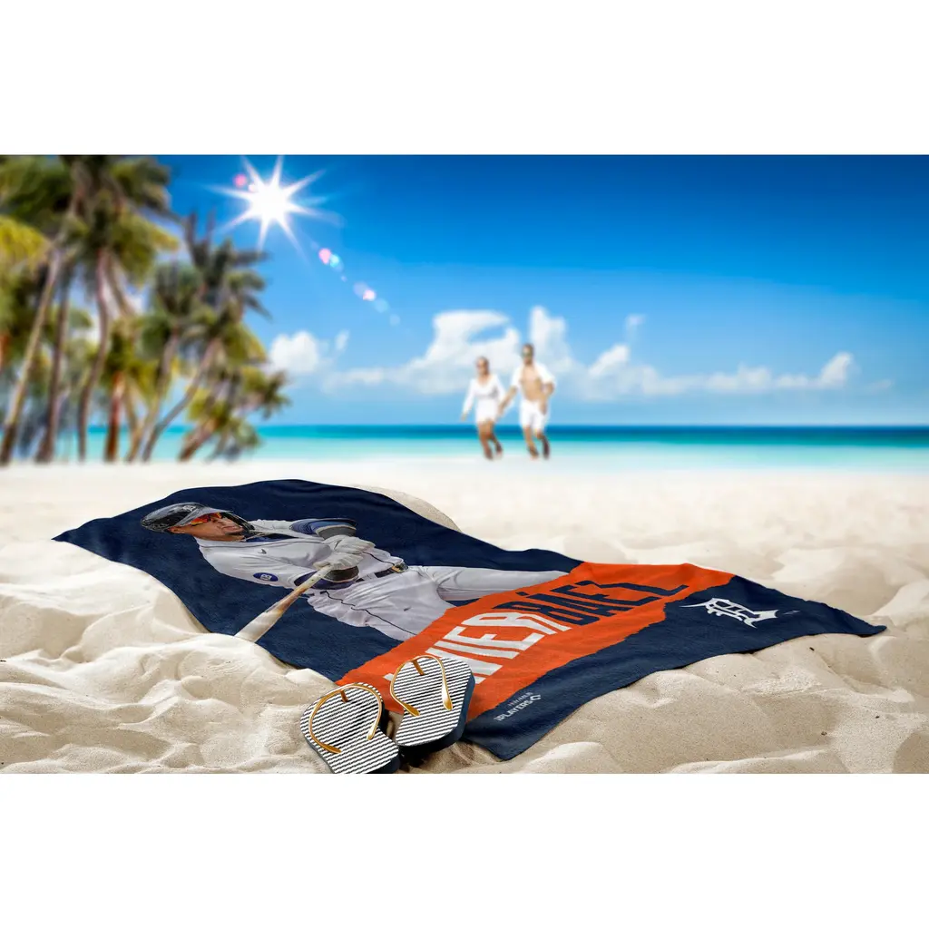 Show off your team spirit at the pool or beach with our Officially Licensed MLB Player Beach Towel! The generously sized soft and absorbent 30 x 60 inches towel features your favorite MLB player in an action pose with his name, logo and team colors, making it a must-have for any fan. Perfect for drying off after a swim or lounging in the sun. Grab your sunscreen, pack your bag, and head out to the water with your new favorite MLB player beach towel!