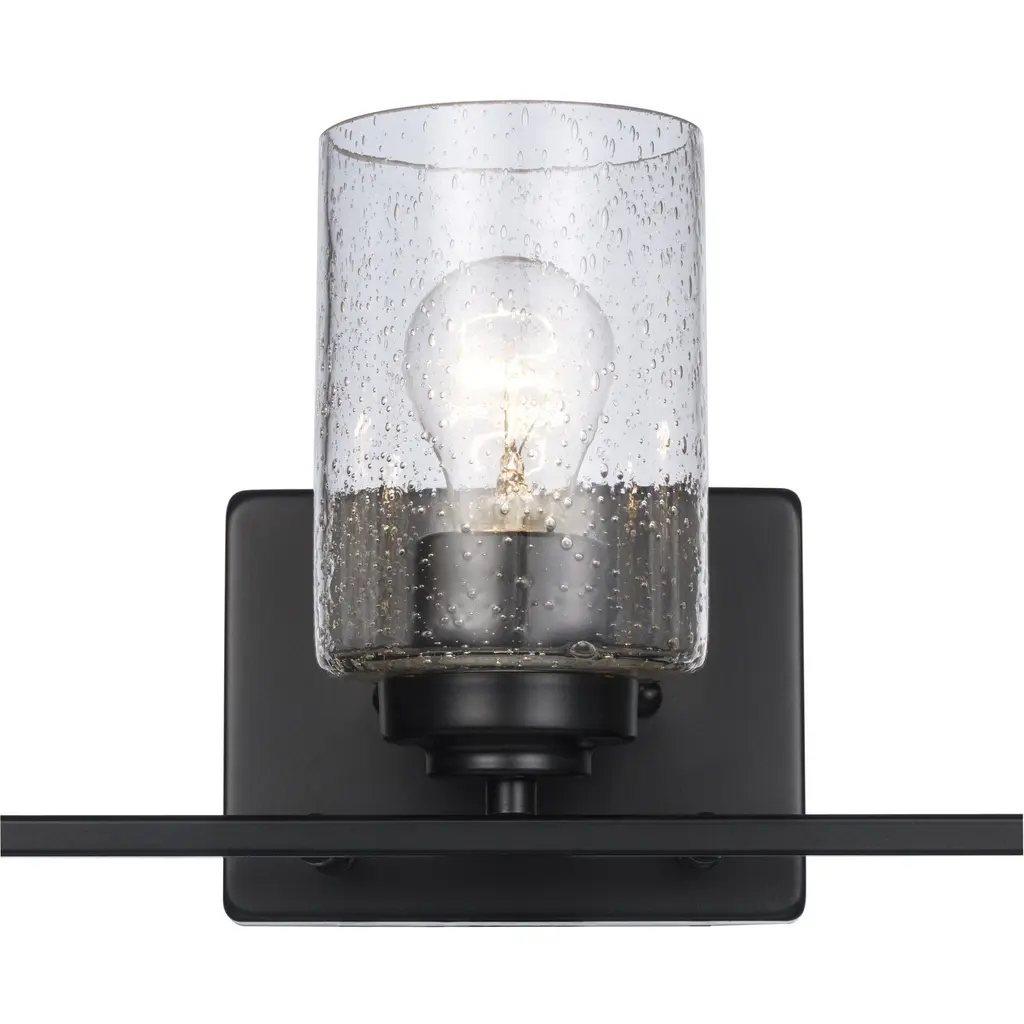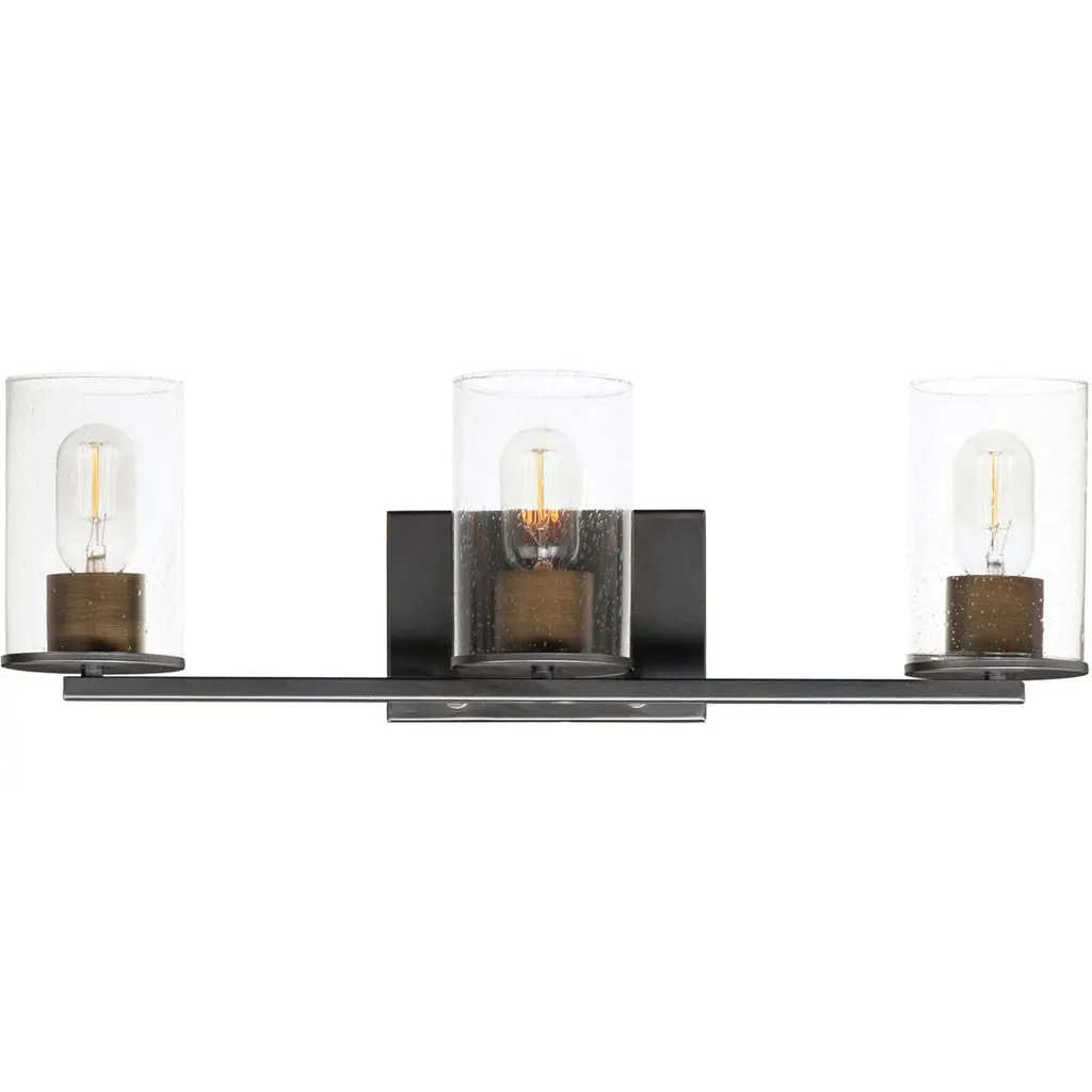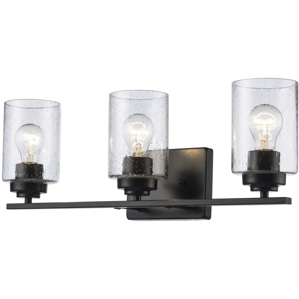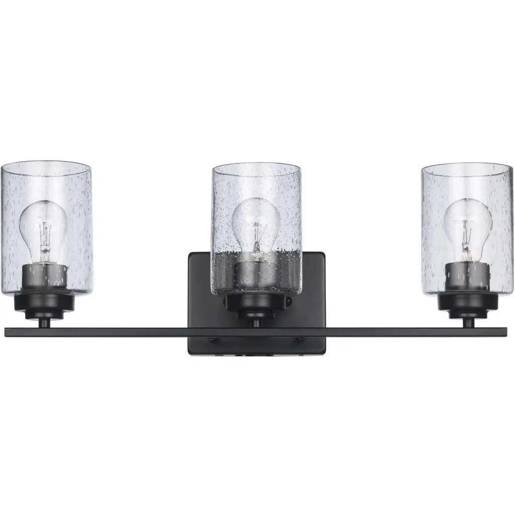 Our dimmable, shaded indoor wall light illuminates your space with this 3 – light, vanity bar. The fixture is hardwired, so no cords hanging down to plug into and the look is clean. This collection offers nice light and a decorative look with individual clear, seeded glass shades. Each shade covers a single 60W, medium base light bulb (sold separately). All wall mount components and material are included for an easy and complete installation.