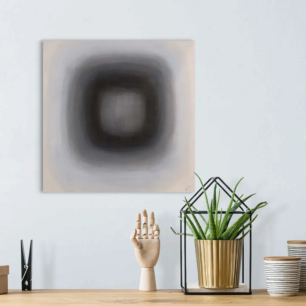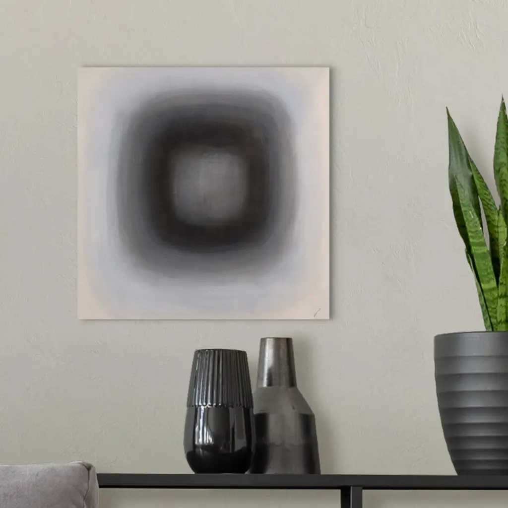 Abstract painting of a faded and blurry rounded square fading in the distance.