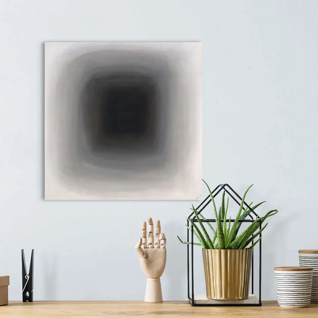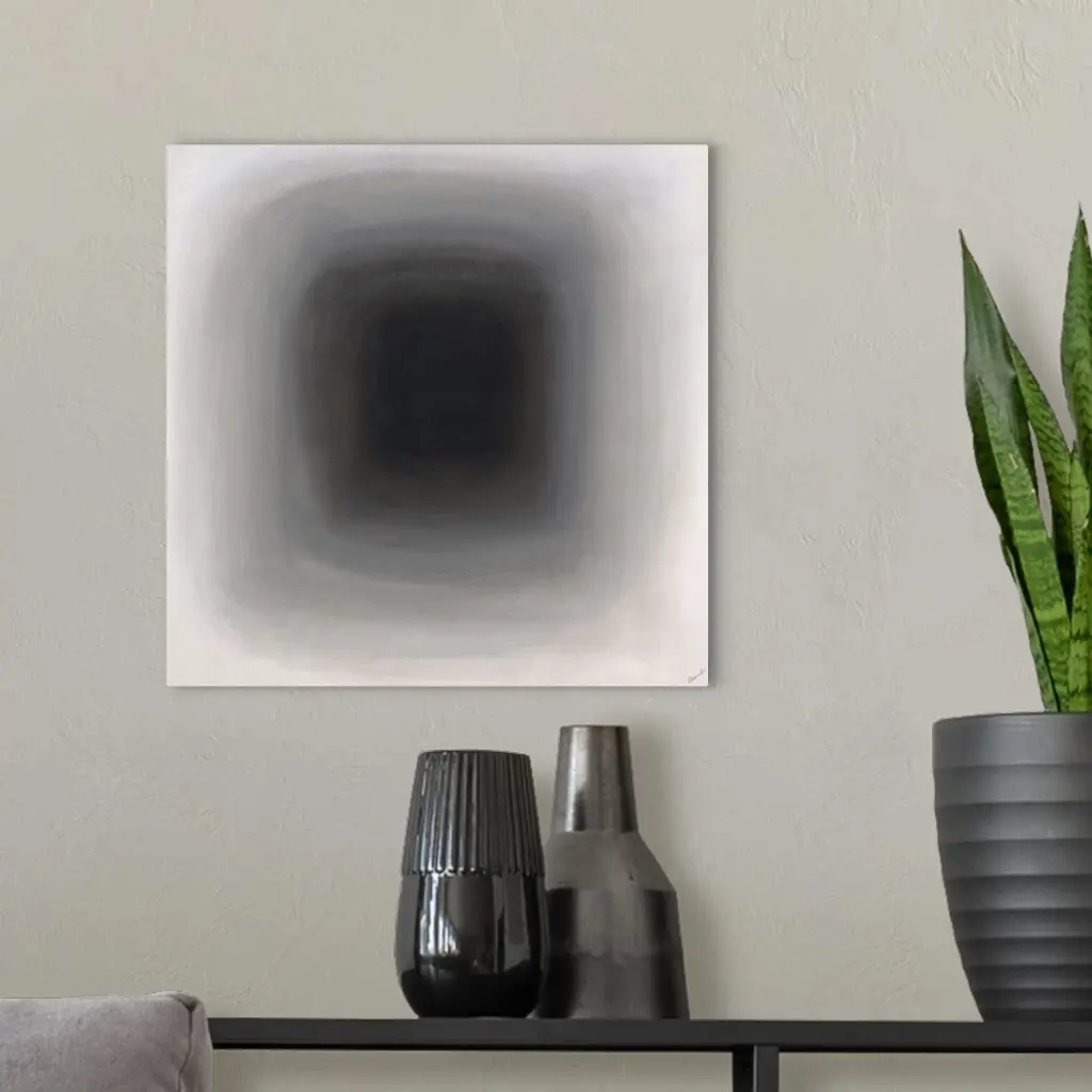 Abstract painting of a faded and blurry rounded square fading in the distance.