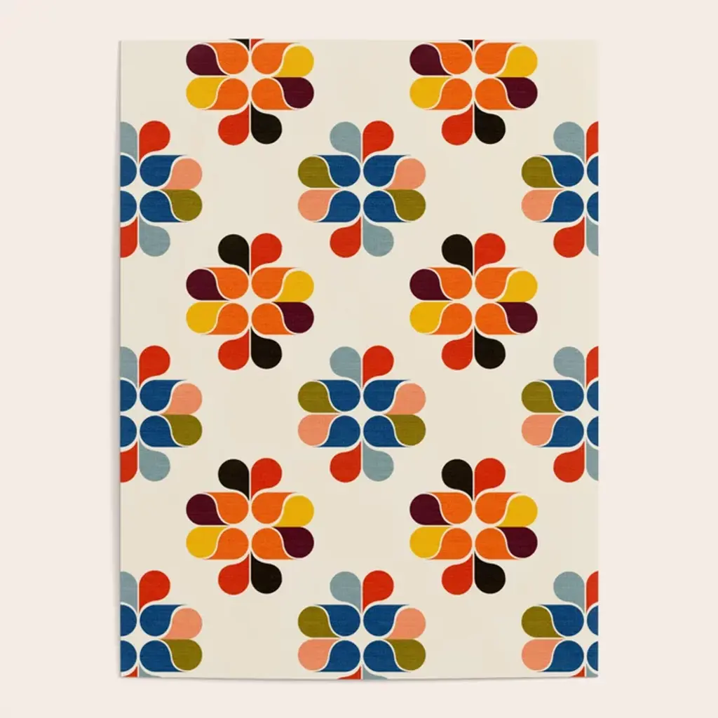 Mod Retro Floral Geometry In Multicolor Poster