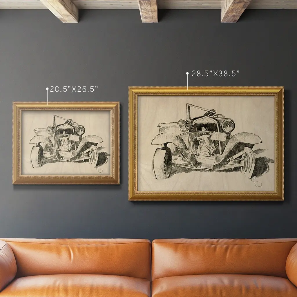 Model A Lines I Premium Framed Canvas- Ready to Hang A Premium Framed Canvas created to last. Framed in distressed wood and available in an array of sizes and colors Featuring a beveled a solid wood stretcher bar, each piece comes ready to hand 3 SIZES AVAILABLE 16''X20'' - Overall Size 18'X27'' - Overall Size 24''x36'' - Overall Size Each piece is made to order. Each piece comes with hanging hardware. Made in the USA Ready to Hang Giclee Paper Print Acrylic Glass Beveled Matt Board