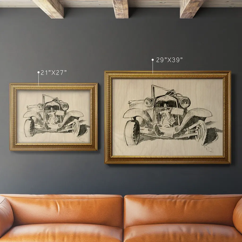 Model A Lines I Premium Framed Canvas- Ready to Hang A Premium Framed Canvas created to last. Framed in distressed wood and available in an array of sizes and colors Featuring a beveled a solid wood stretcher bar, each piece comes ready to hand 3 SIZES AVAILABLE 16''X20'' - Overall Size 18'X27'' - Overall Size 24''x36'' - Overall Size Each piece is made to order. Each piece comes with hanging hardware. Made in the USA Ready to Hang Giclee Paper Print Acrylic Glass Beveled Matt Board