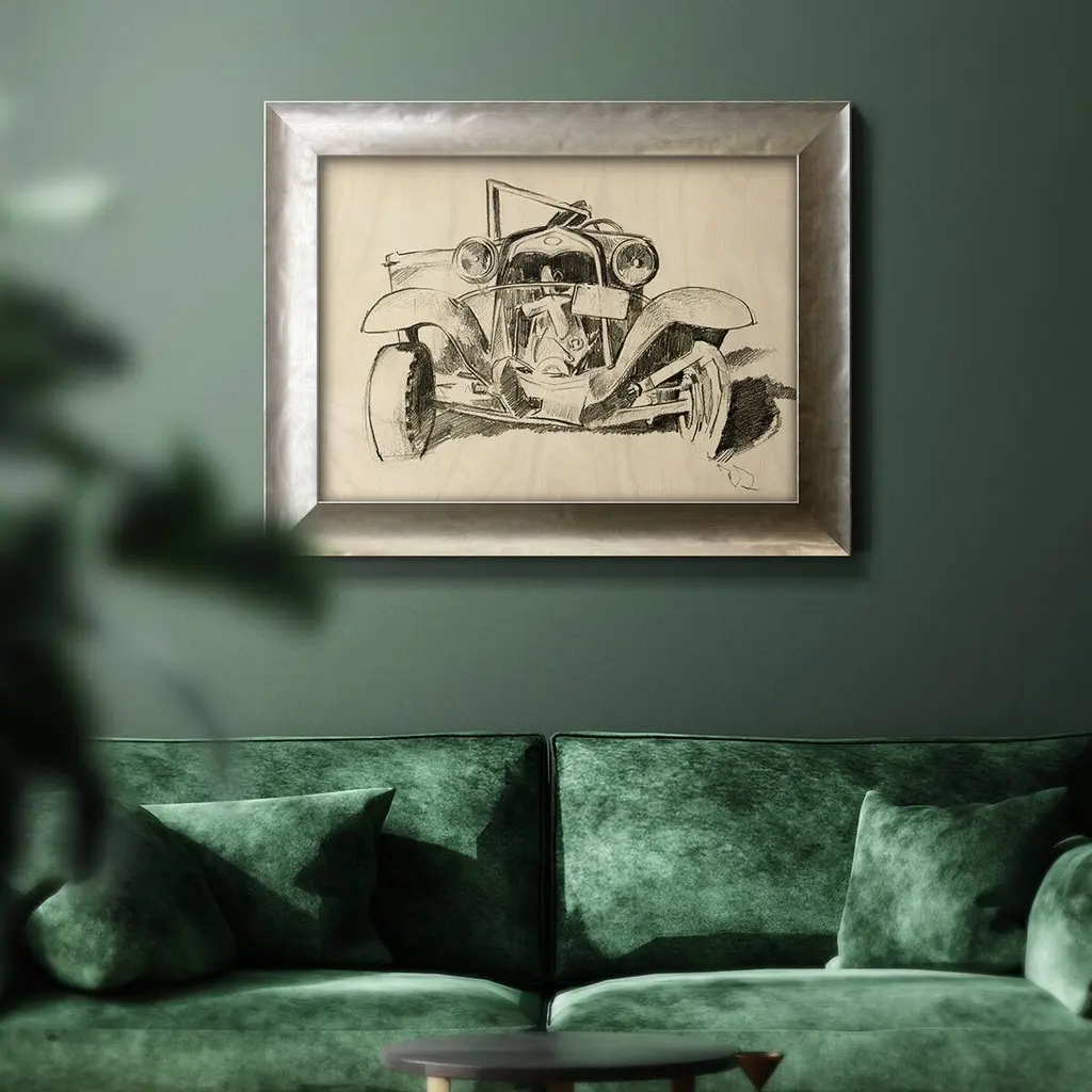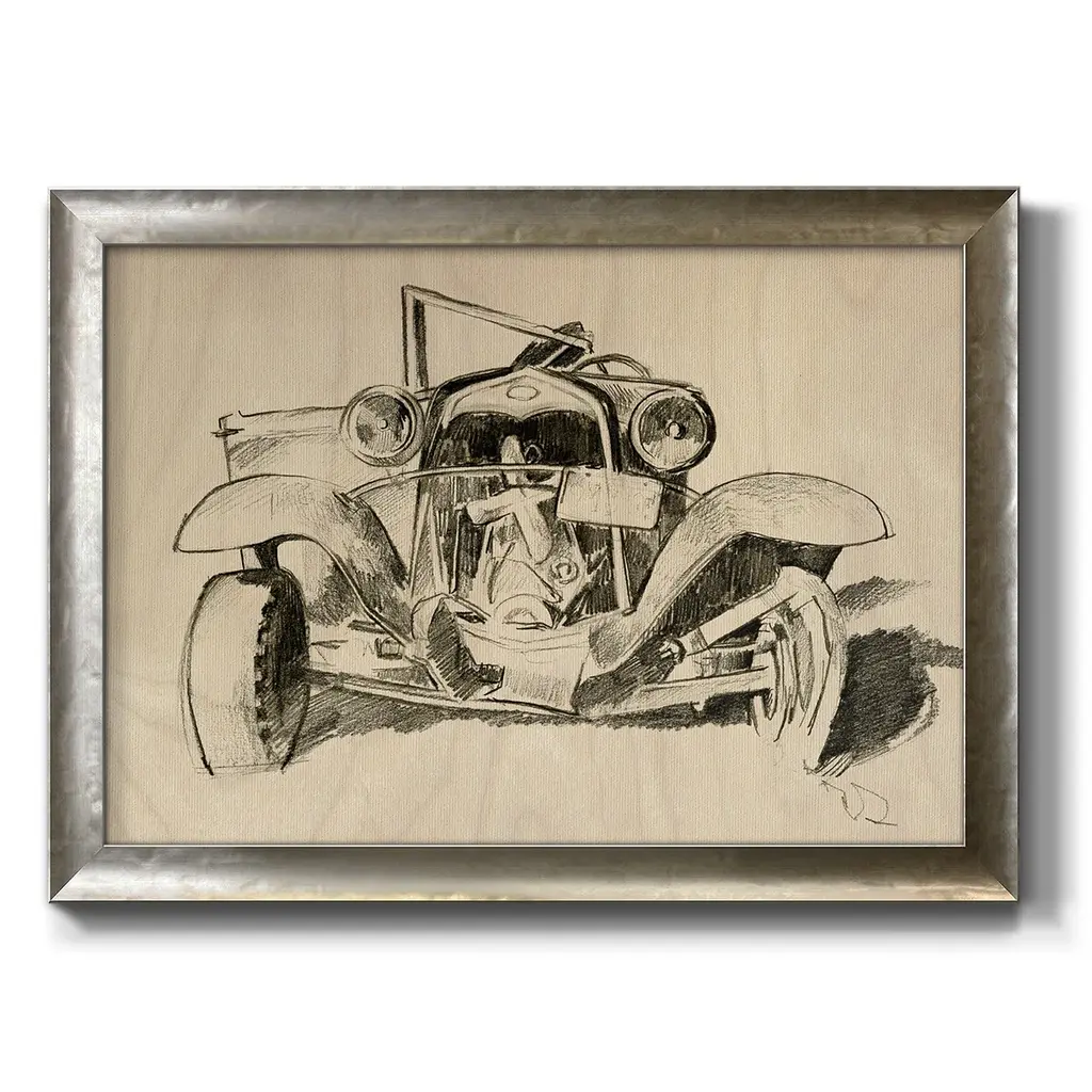 Model A Lines I Premium Framed Canvas- Ready to Hang A Premium Framed Canvas created to last. Framed in distressed wood and available in an array of sizes and colors Featuring a beveled a solid wood stretcher bar, each piece comes ready to hand 3 SIZES AVAILABLE 16''X20'' - Overall Size 18'X27'' - Overall Size 24''x36'' - Overall Size Each piece is made to order. Each piece comes with hanging hardware. Made in the USA Ready to Hang Giclee Paper Print Acrylic Glass Beveled Matt Board