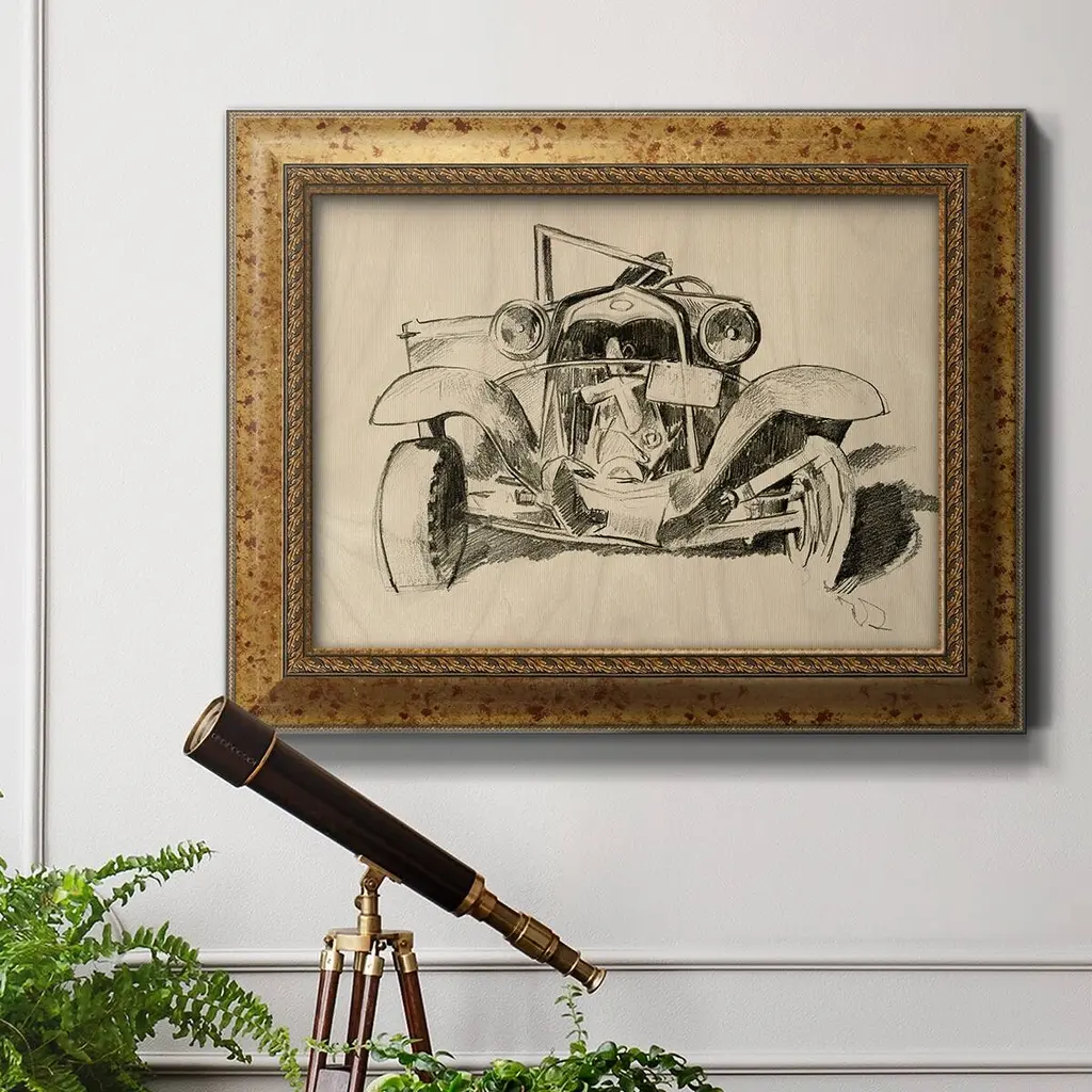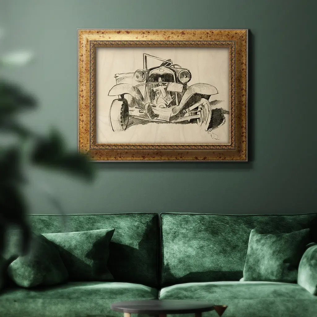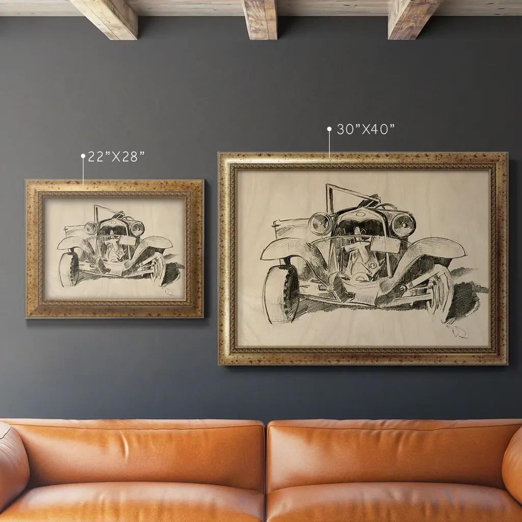 Model A Lines I Premium Framed Canvas- Ready to Hang A Premium Framed Canvas created to last. Framed in distressed wood and available in an array of sizes and colors Featuring a beveled a solid wood stretcher bar, each piece comes ready to hand 3 SIZES AVAILABLE 16''X20'' - Overall Size 18'X27'' - Overall Size 24''x36'' - Overall Size Each piece is made to order. Each piece comes with hanging hardware. Made in the USA Ready to Hang Giclee Paper Print Acrylic Glass Beveled Matt Board