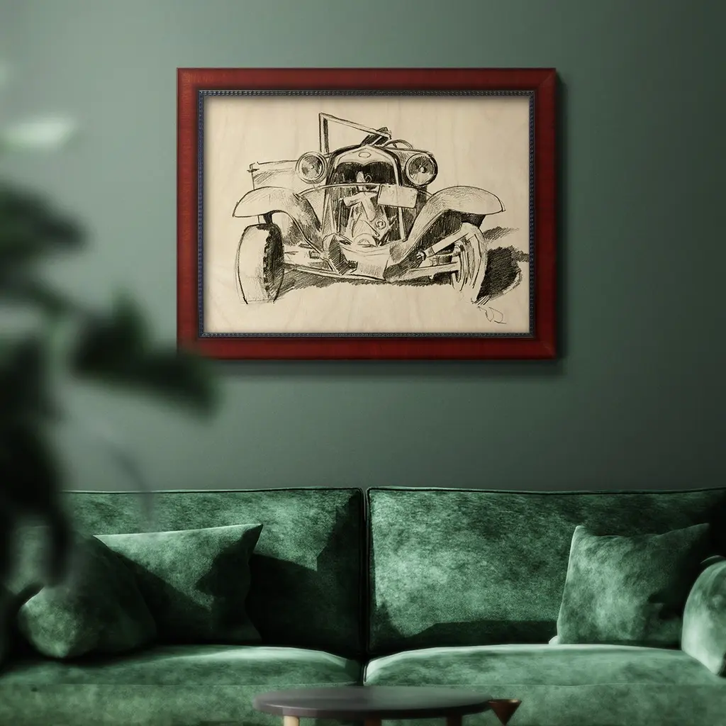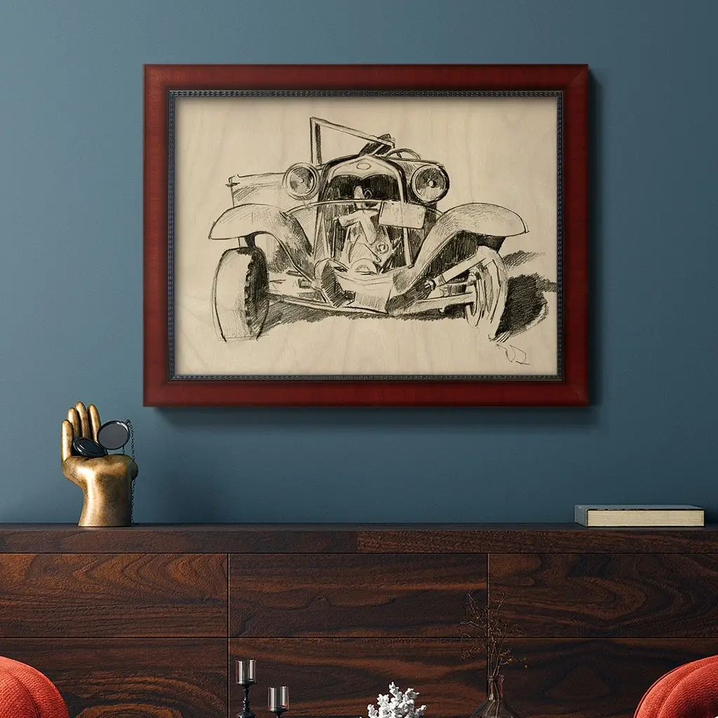 Model A Lines I Premium Framed Canvas- Ready to Hang A Premium Framed Canvas created to last. Framed in distressed wood and available in an array of sizes and colors Featuring a beveled a solid wood stretcher bar, each piece comes ready to hand 3 SIZES AVAILABLE 16''X20'' - Overall Size 18'X27'' - Overall Size 24''x36'' - Overall Size Each piece is made to order. Each piece comes with hanging hardware. Made in the USA Ready to Hang Giclee Paper Print Acrylic Glass Beveled Matt Board