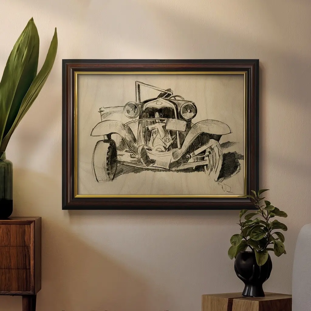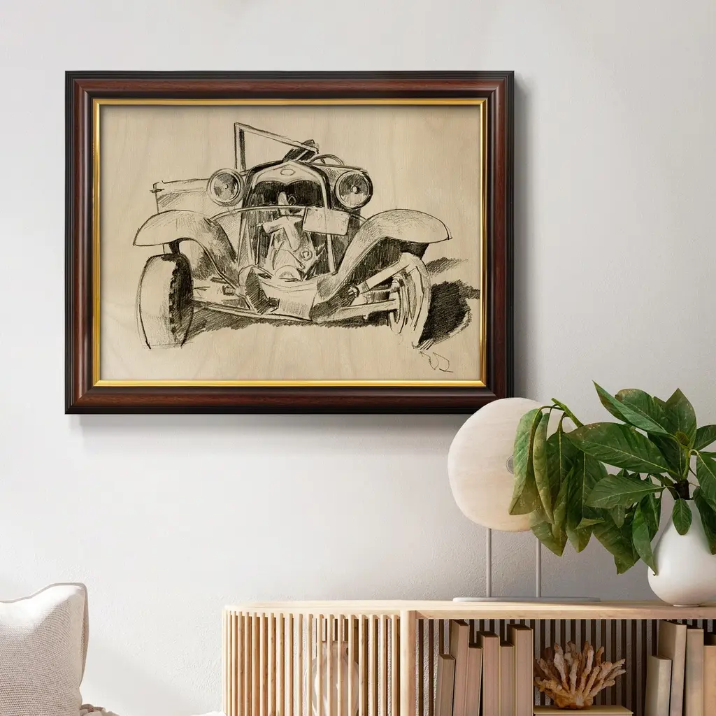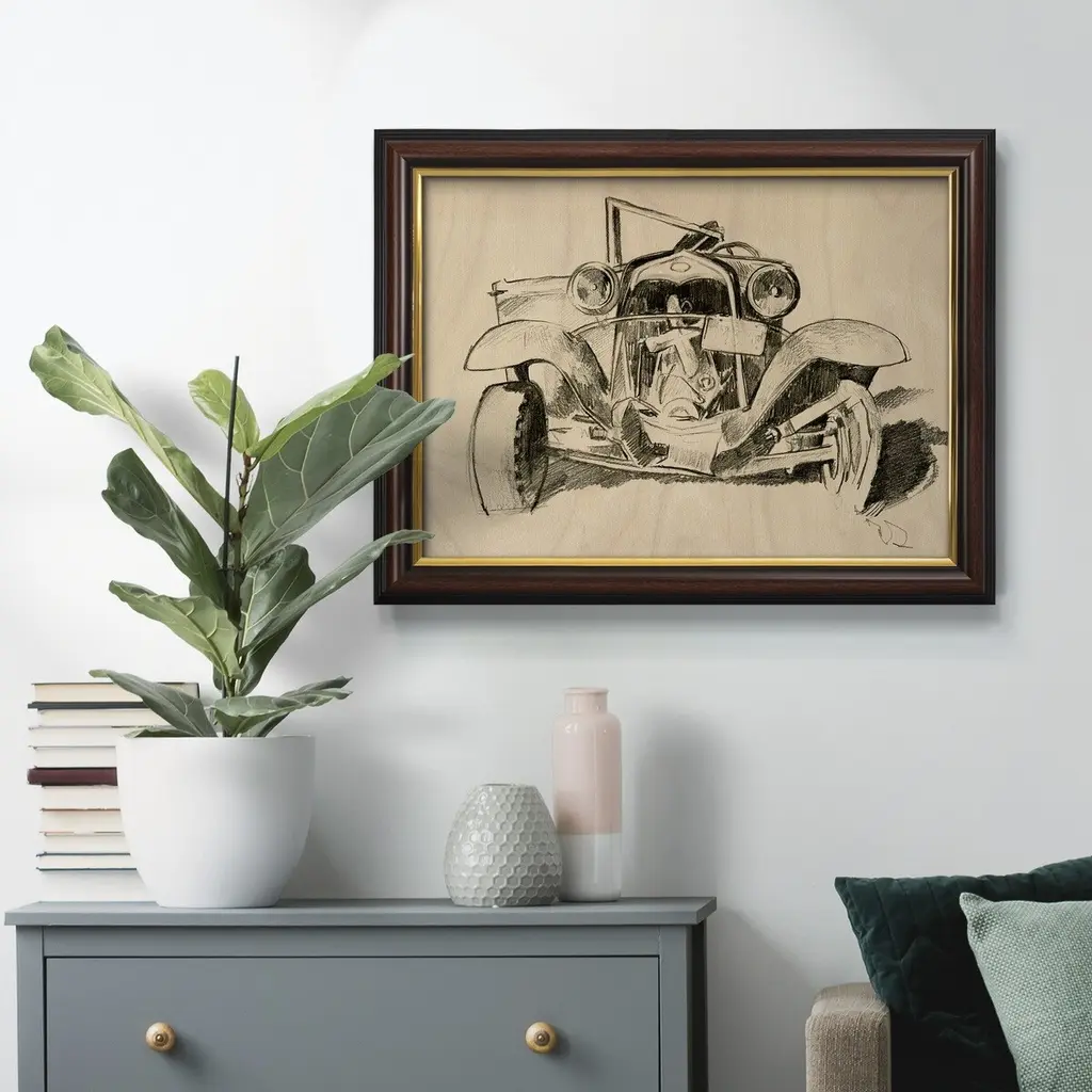 Model A Lines I Premium Framed Canvas- Ready to Hang A Premium Framed Canvas created to last. Framed in distressed wood and available in an array of sizes and colors Featuring a beveled a solid wood stretcher bar, each piece comes ready to hand 3 SIZES AVAILABLE 16''X20'' - Overall Size 18'X27'' - Overall Size 24''x36'' - Overall Size Each piece is made to order. Each piece comes with hanging hardware. Made in the USA Ready to Hang Giclee Paper Print Acrylic Glass Beveled Matt Board