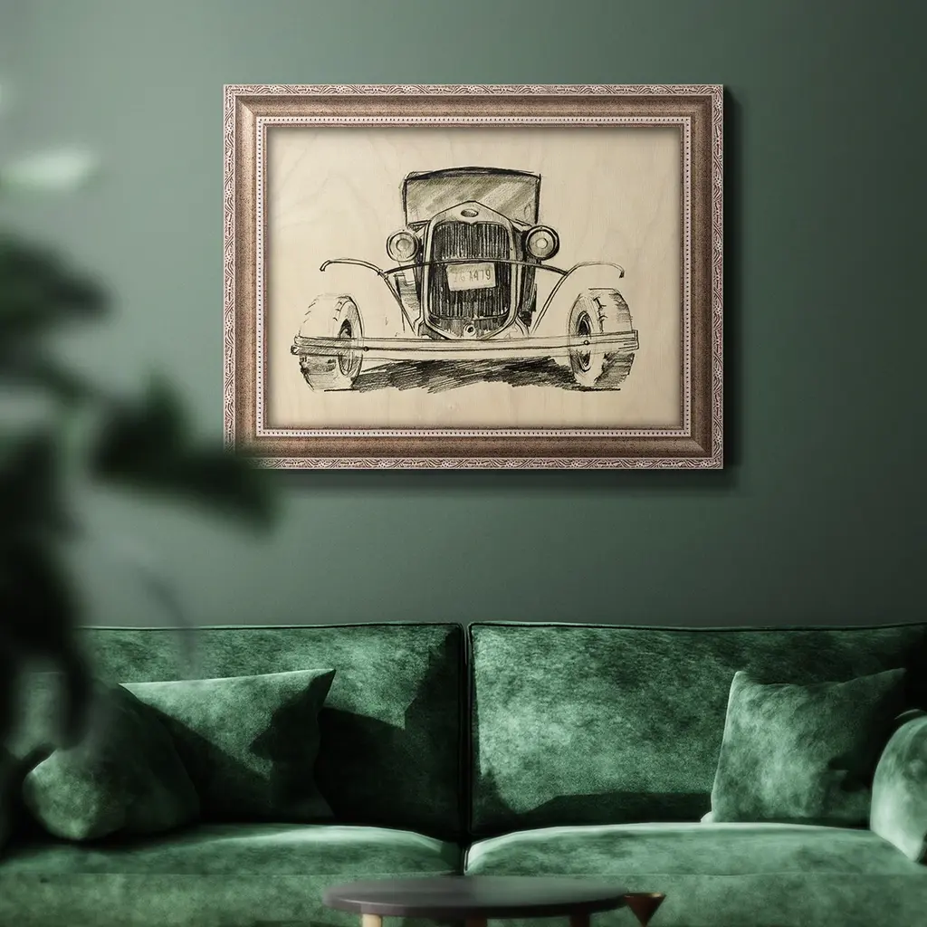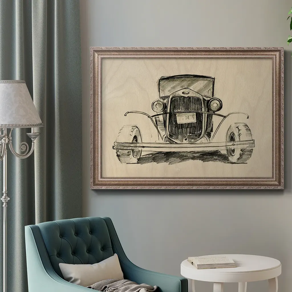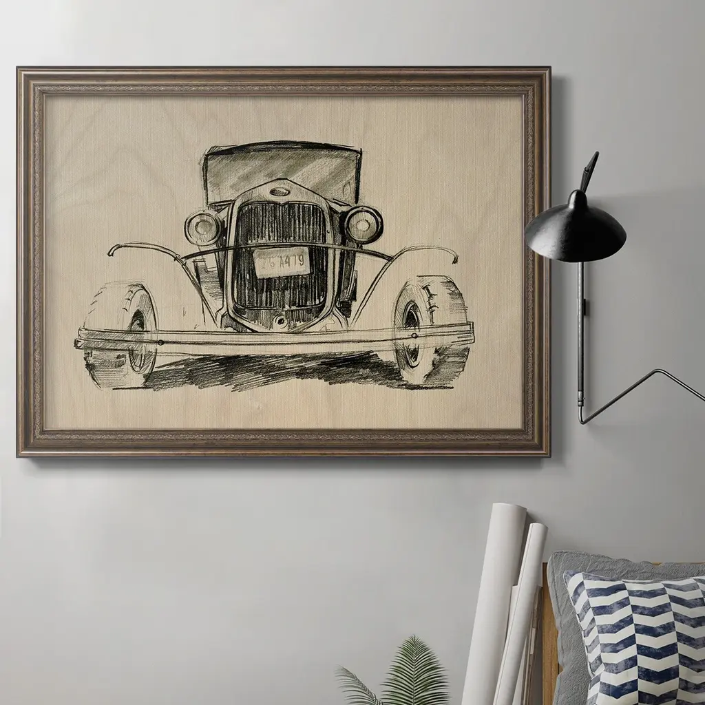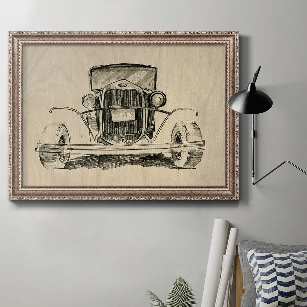 Model A Lines II Premium Framed Canvas- Ready to Hang A Premium Framed Canvas created to last. Framed in distressed wood and available in an array of sizes and colors Featuring a beveled a solid wood stretcher bar, each piece comes ready to hand 3 SIZES AVAILABLE 16''X20'' - Overall Size 18'X27'' - Overall Size 24''x36'' - Overall Size Each piece is made to order. Each piece comes with hanging hardware. Made in the USA Ready to Hang Giclee Paper Print Acrylic Glass Beveled Matt Board