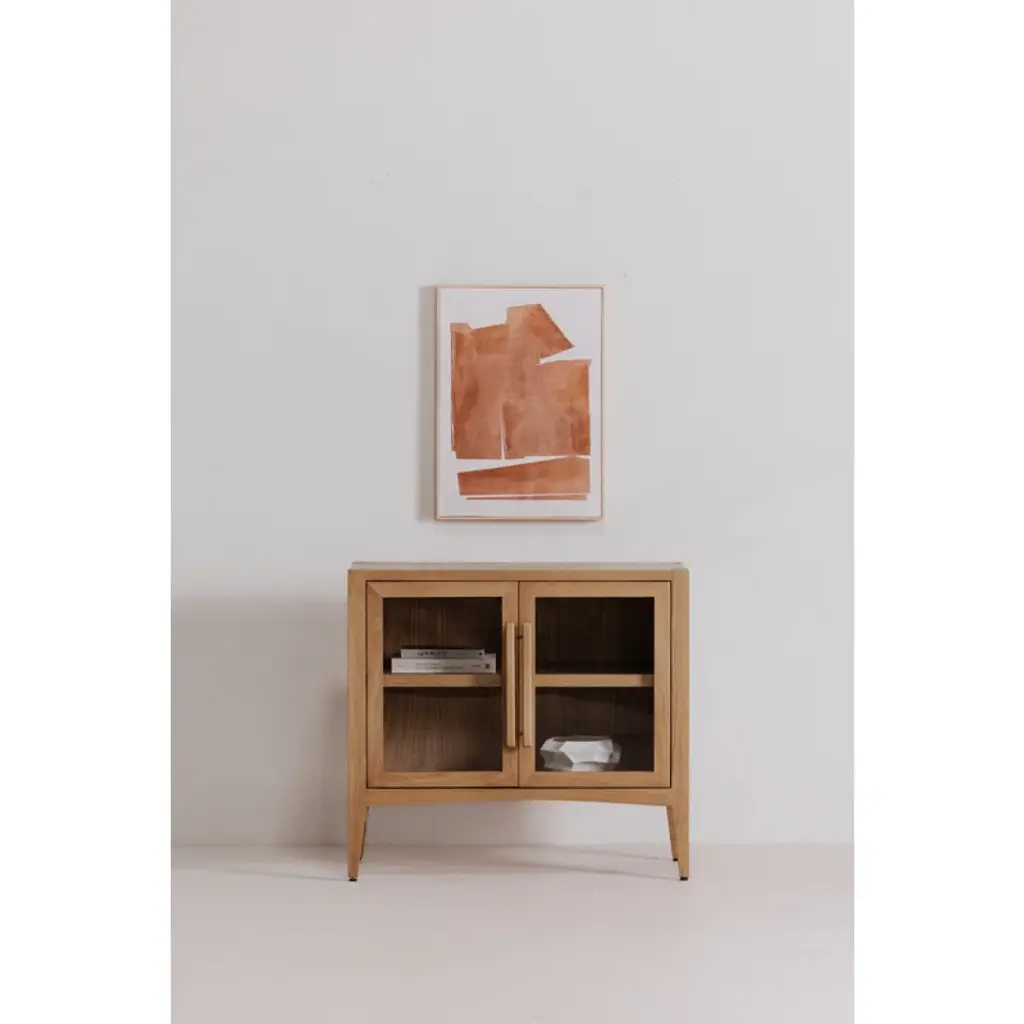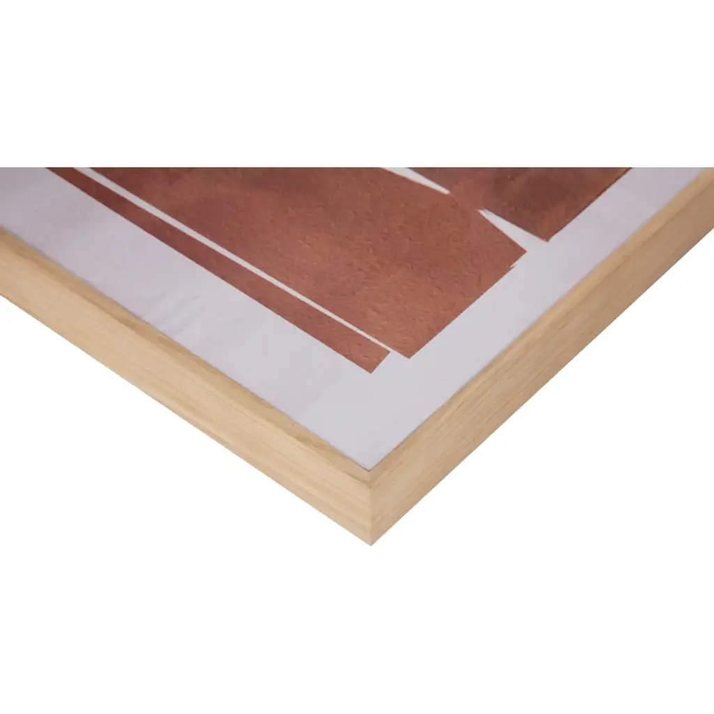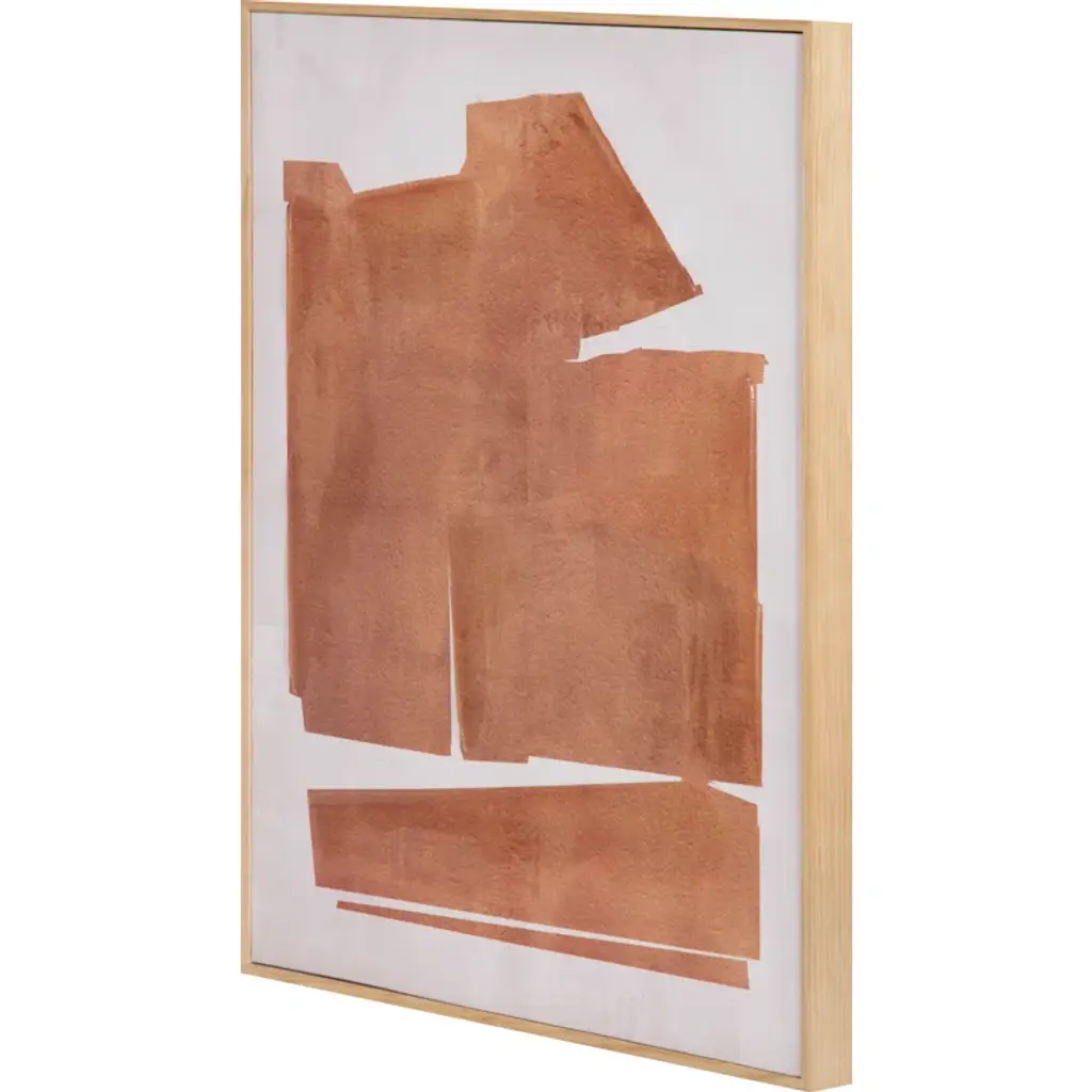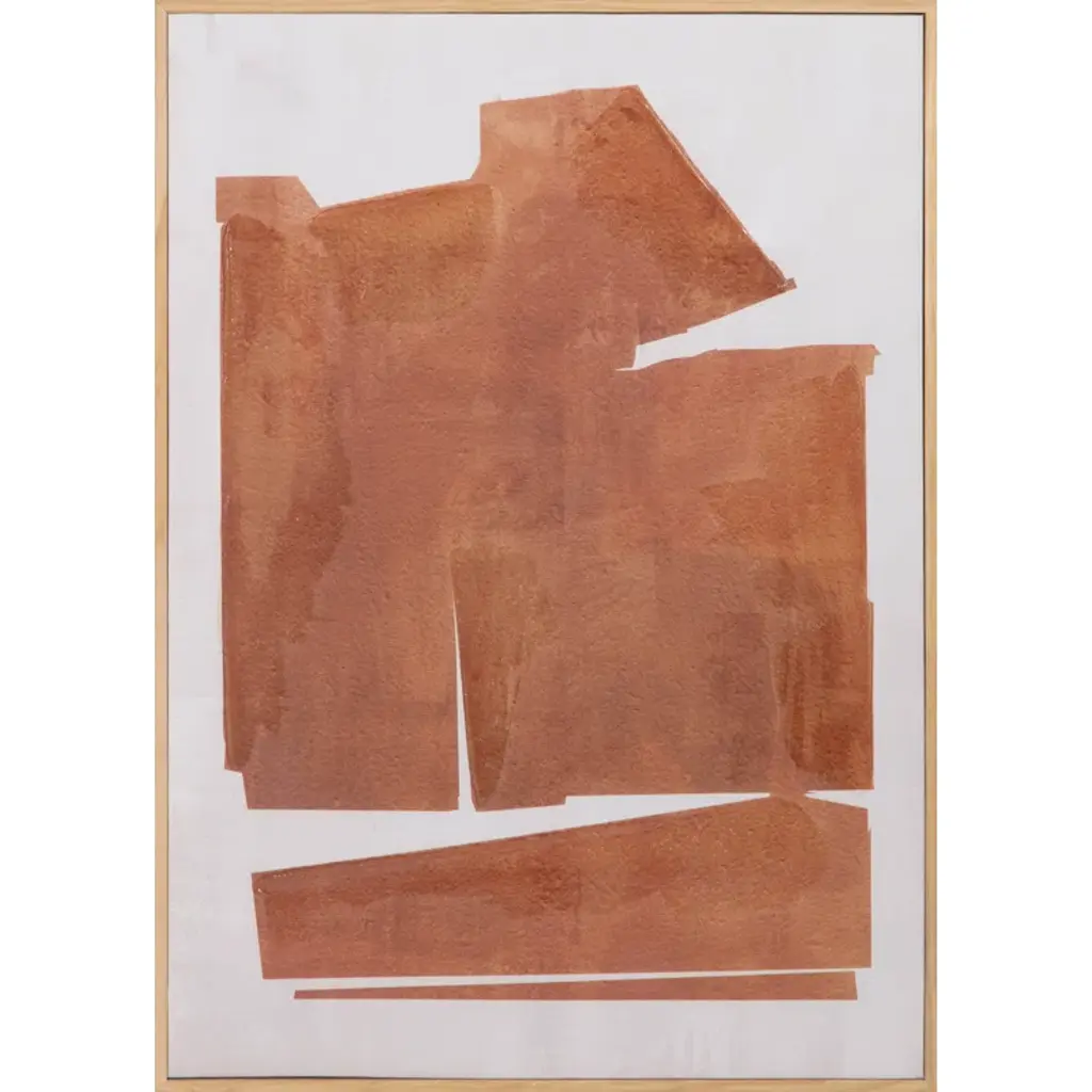 Earthy warmth meets abstract forms. Our captivating wall art features a serene yet striking composition of softened angles and muted tones. The complementary pink and orange hues evoke a sense of warmth, while the solid pine frame adds a touch of sophistication. Printed on canvas, this piece is perfect for adding a touch of abstract allure to your space.