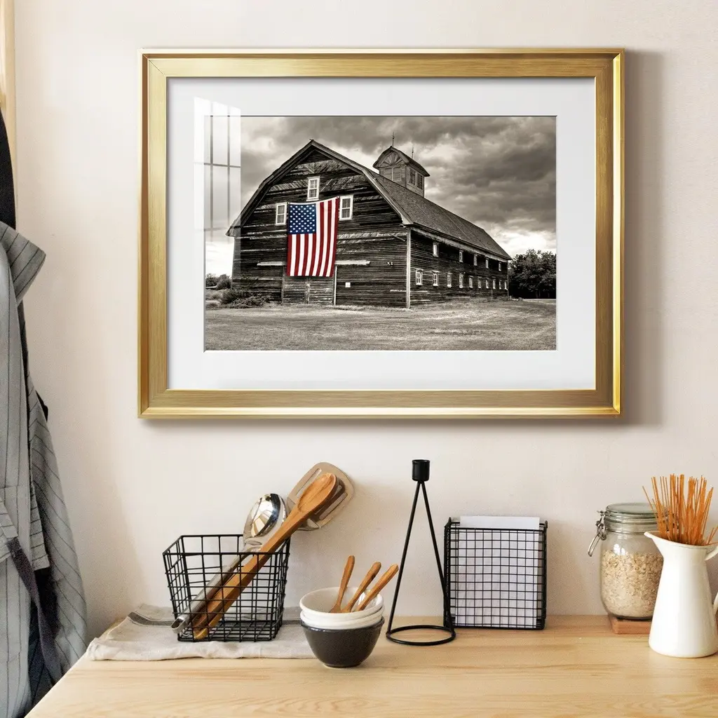 Modern Barn III Premium Framed Print - Ready to Hang A Premium Framed Print created to last. Framed in distressed wood and available in an array of sizes and colors Featuring a beveled a solid wood stretcher bar, each piece comes ready to hand 4 SIZES AVAILABLE 30.5''X42.5'' - Overall Size 26.5'X36.5'' - Overall Size 22''x30'' - Overall Size 18''x24'' - Overall Size Each piece is made to order. Each piece comes with hanging hardware. Made in the USA Ready to Hang Giclee Paper Print Acrylic Glass Beveled Matt Board