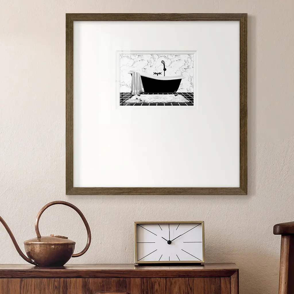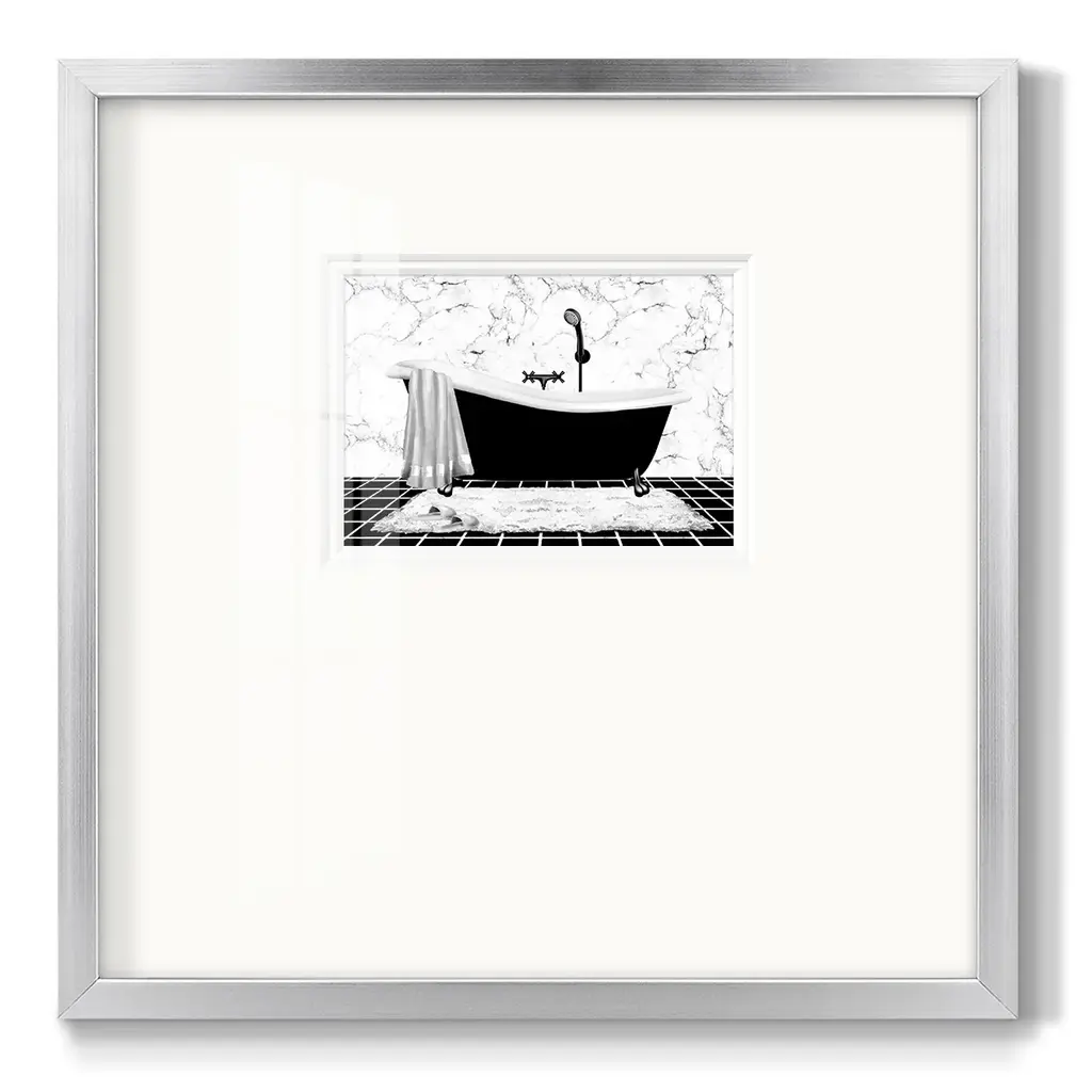 Modern Bath IPremium Framed Print A framed cold pressed paper print featuring superior double matting and quality frame. 2 SIZES AVAILABLE 16''X16''' - Overall Size 20''X20''' - Overall Size Each piece is made to order. Each piece comes with hanging hardware. Made in the USA Ready to Hang Giclee Paper Print Plexiglass Beveled Matt Board Double Matte Board