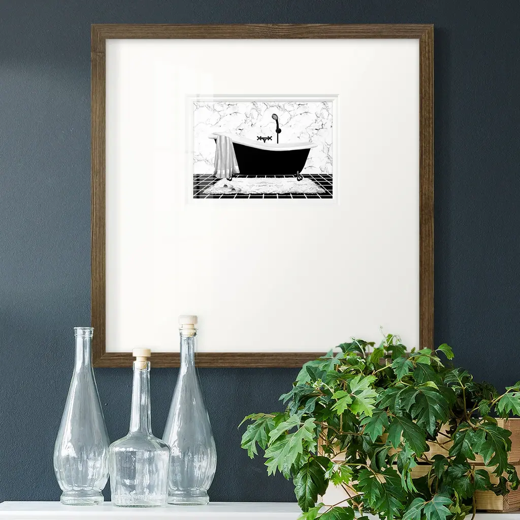 Modern Bath IPremium Framed Print A framed cold pressed paper print featuring superior double matting and quality frame. 2 SIZES AVAILABLE 16''X16''' - Overall Size 20''X20''' - Overall Size Each piece is made to order. Each piece comes with hanging hardware. Made in the USA Ready to Hang Giclee Paper Print Plexiglass Beveled Matt Board Double Matte Board