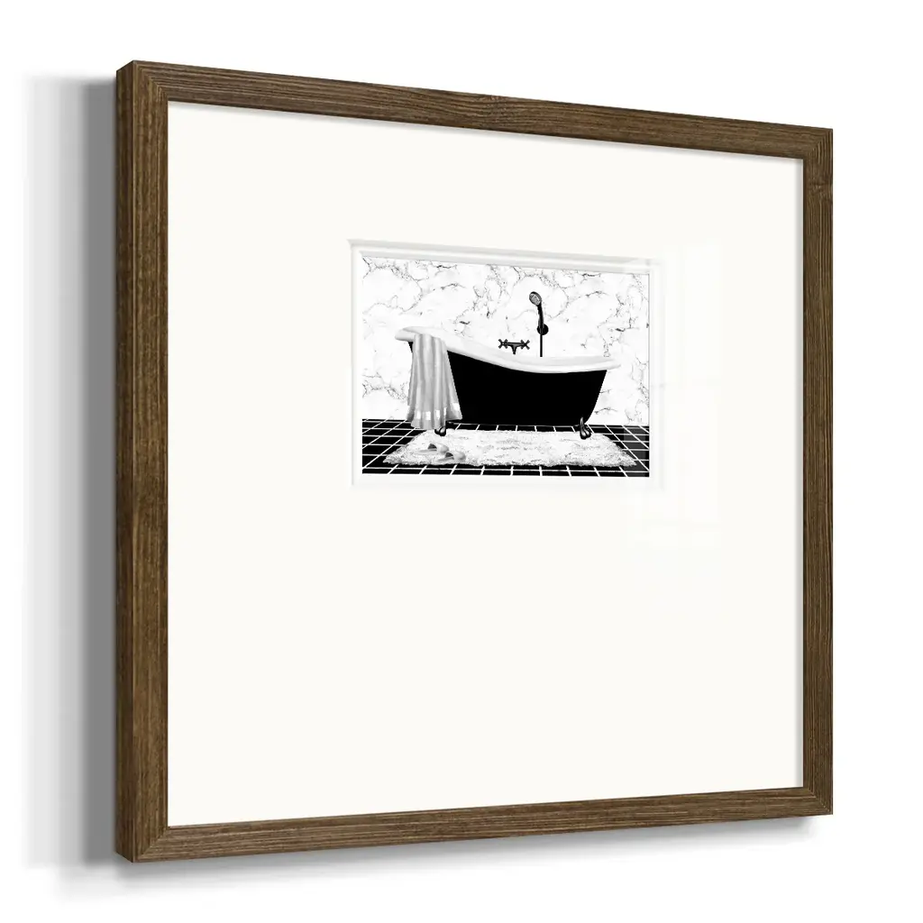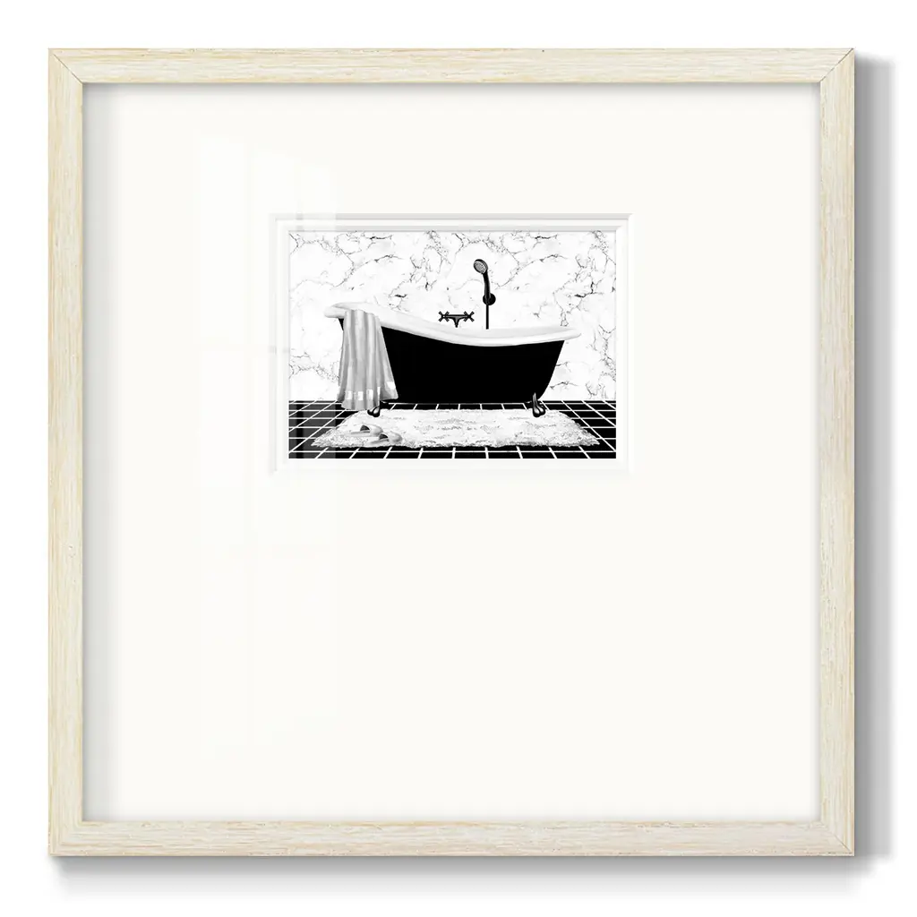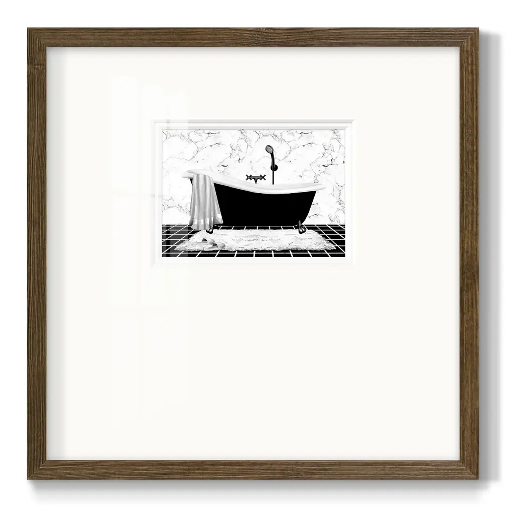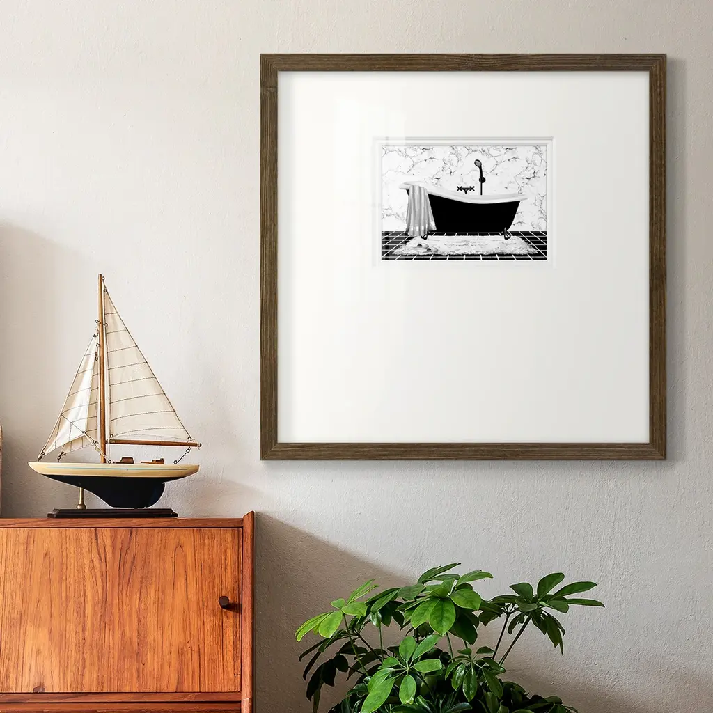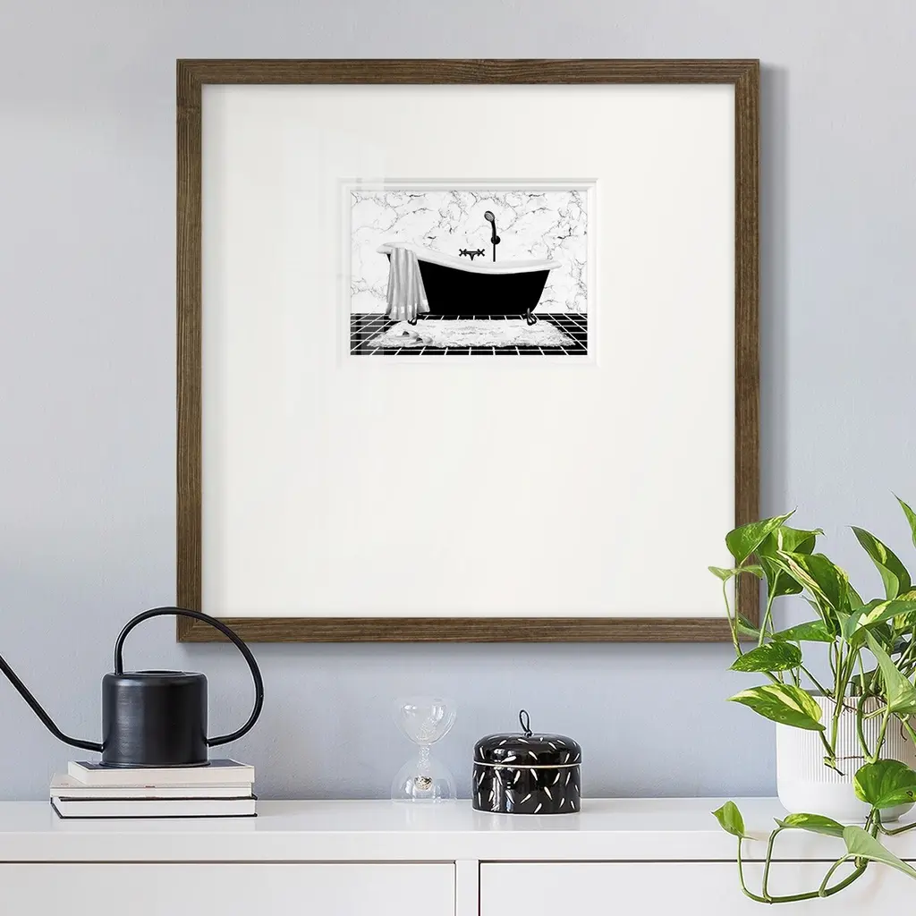 Modern Bath IPremium Framed Print A framed cold pressed paper print featuring superior double matting and quality frame. 2 SIZES AVAILABLE 16''X16''' - Overall Size 20''X20''' - Overall Size Each piece is made to order. Each piece comes with hanging hardware. Made in the USA Ready to Hang Giclee Paper Print Plexiglass Beveled Matt Board Double Matte Board