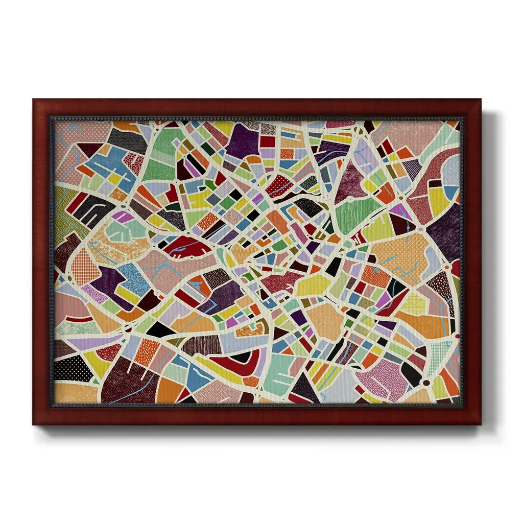 Modern Birmingham Map Premium Framed Canvas- Ready To Hang - 16x20 - Mahogany