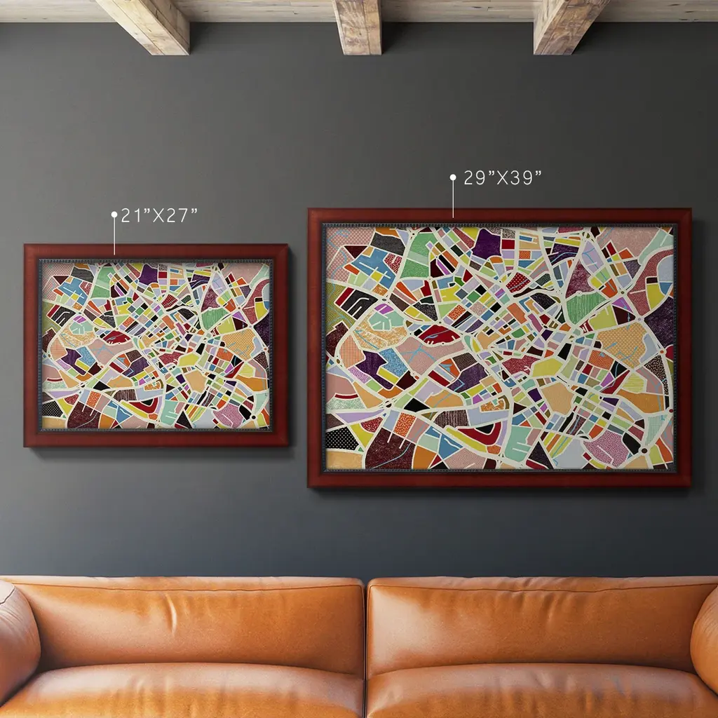 Modern Birmingham Map Premium Framed Canvas- Ready to Hang A Premium Framed Canvas created to last. Framed in distressed wood and available in an array of sizes and colors Featuring a beveled a solid wood stretcher bar, each piece comes ready to hand 3 SIZES AVAILABLE 16''X20'' - Overall Size 18'X27'' - Overall Size 24''x36'' - Overall Size Each piece is made to order. Each piece comes with hanging hardware. Made in the USA Ready to Hang Giclee Paper Print Acrylic Glass Beveled Matt Board