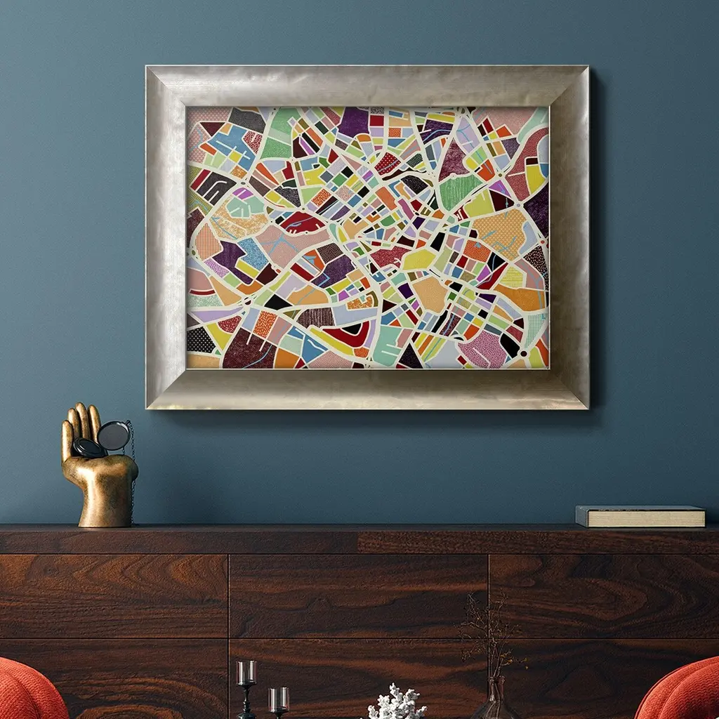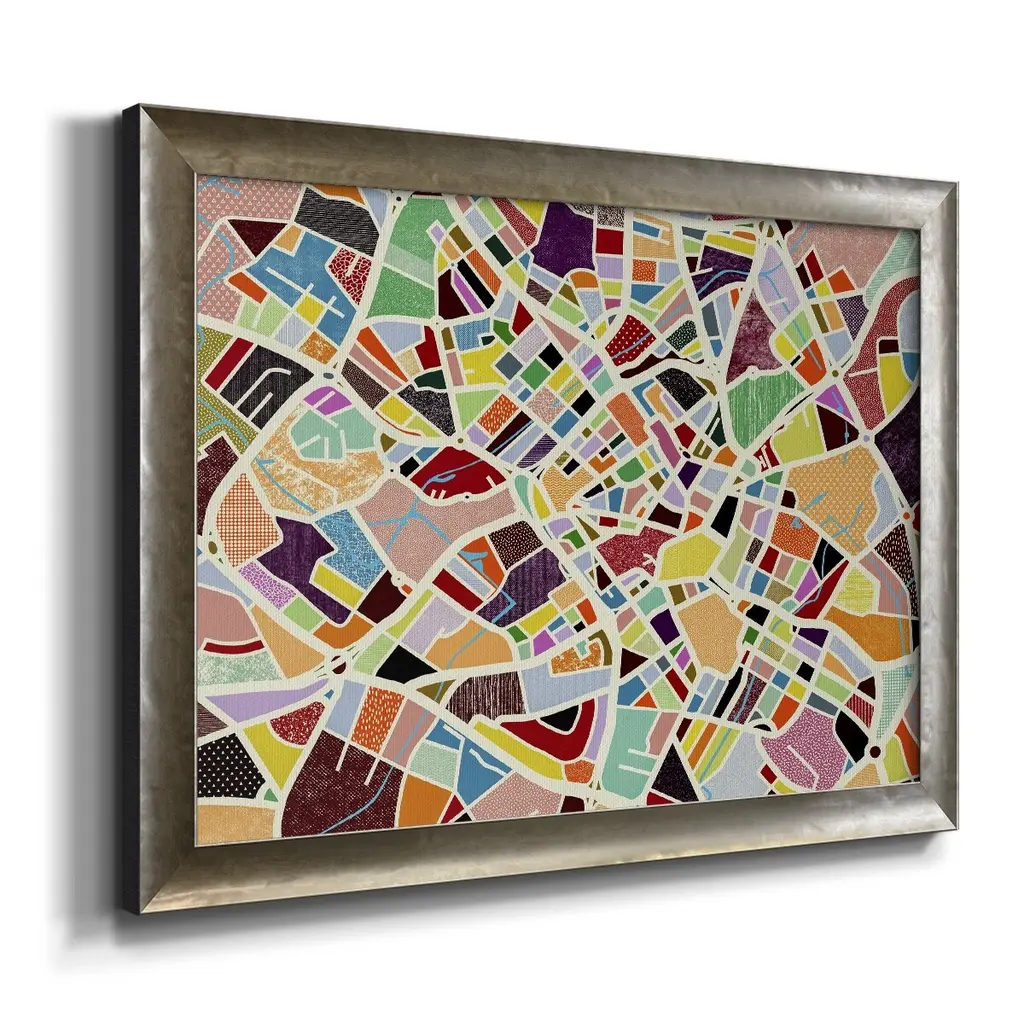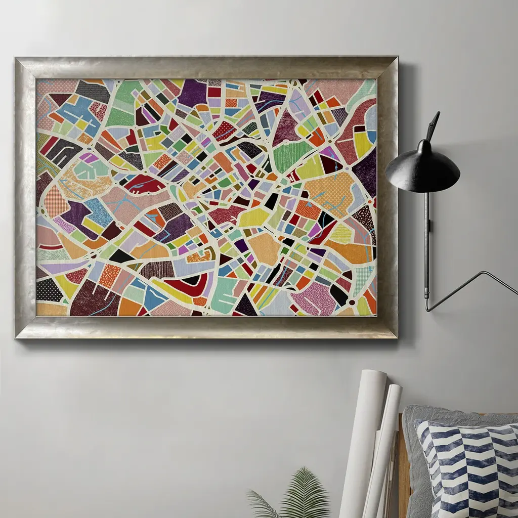 Modern Birmingham Map Premium Framed Canvas- Ready to Hang A Premium Framed Canvas created to last. Framed in distressed wood and available in an array of sizes and colors Featuring a beveled a solid wood stretcher bar, each piece comes ready to hand 3 SIZES AVAILABLE 16''X20'' - Overall Size 18'X27'' - Overall Size 24''x36'' - Overall Size Each piece is made to order. Each piece comes with hanging hardware. Made in the USA Ready to Hang Giclee Paper Print Acrylic Glass Beveled Matt Board