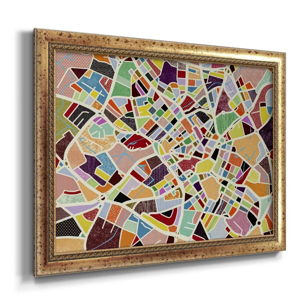 Modern Birmingham Map Premium Framed Canvas- Ready To Hang - 24x36 - Gold