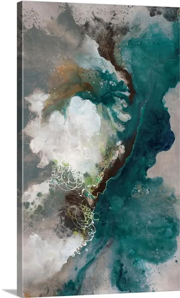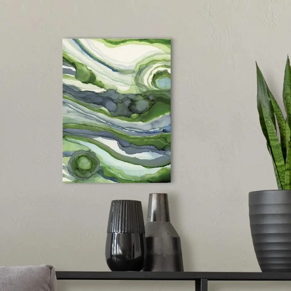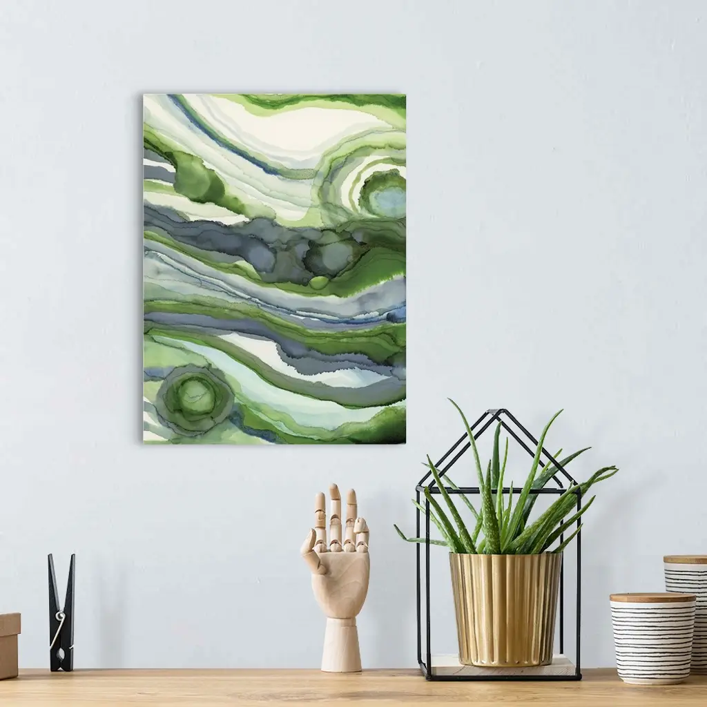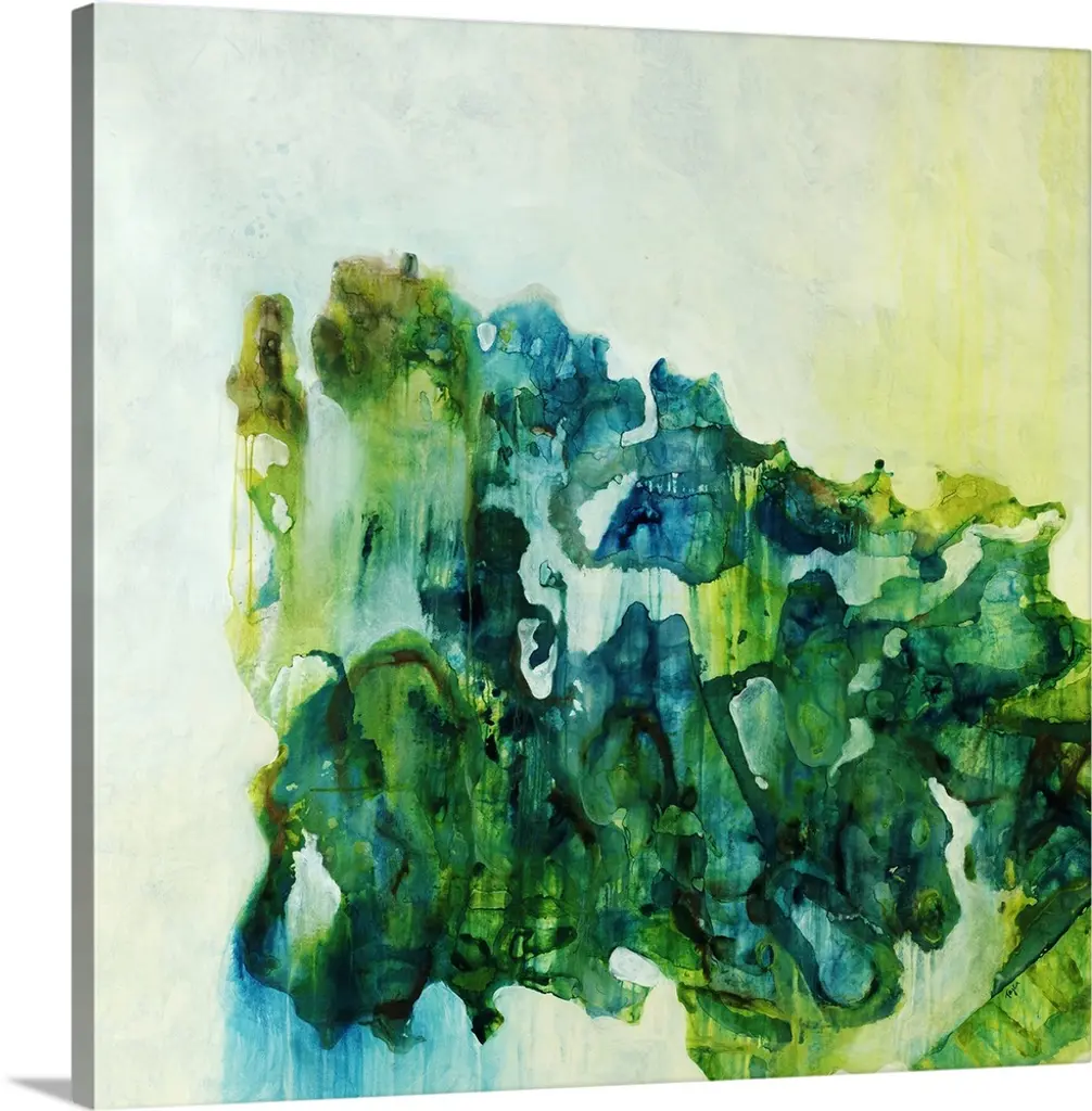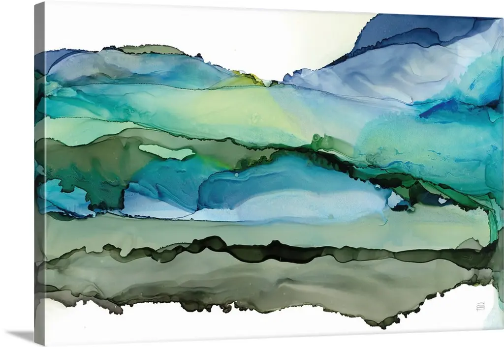 Abstract organic watercolor painting in blues and greens