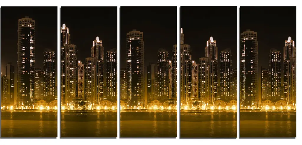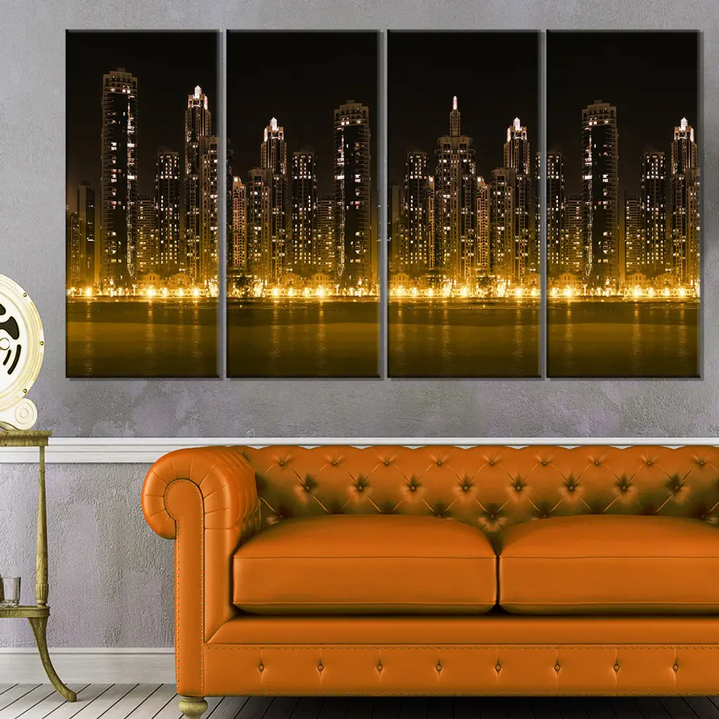 "Modern City With Illuminated Skyscrapers" Wall Art, 48"x28", 4-Panels