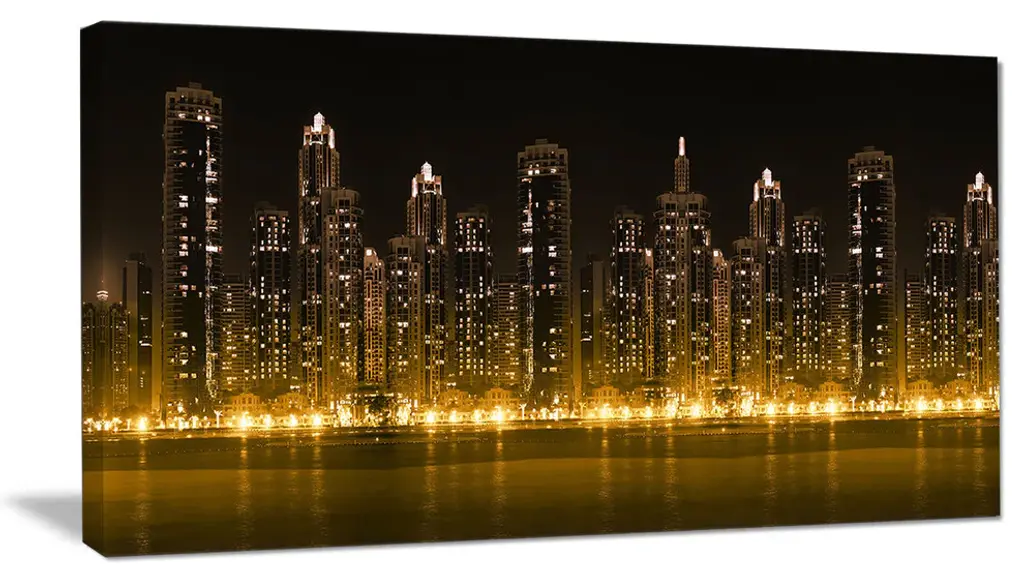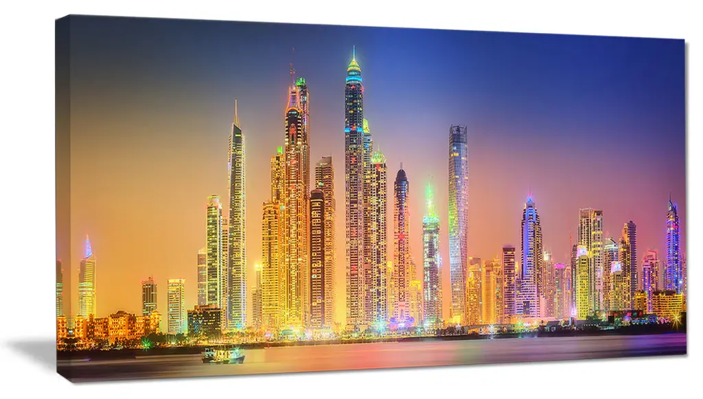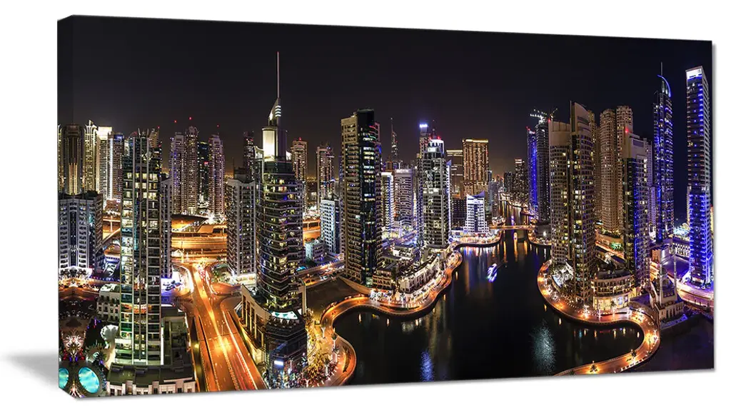 The Modern City with Illuminated Skyscrapers canvas art print is sure to make an impression on anyone who sees it. This artwork is gallery wrapped around a 1-inch solid wood frame and arrives carefully packaged and entirely ready to hang on the wall. Design Art only uses the highest resolution and pigments to ensure a crisp colorful print that is never faded or pixelated. This artwork is sure to be a conversation starter in any home or office.