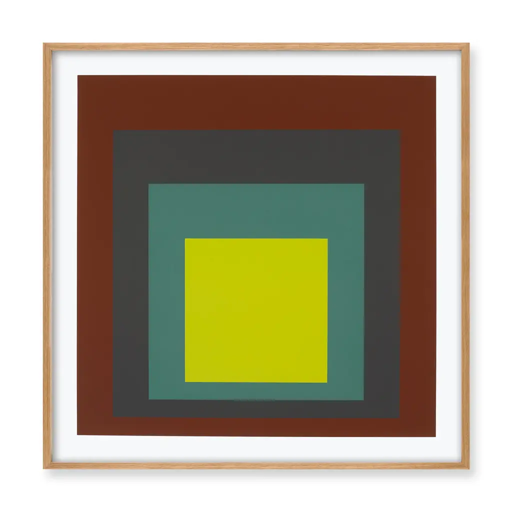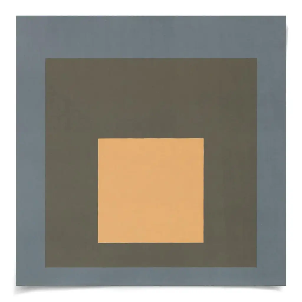 This silkscreen series pays homage to the chromatic interaction studies of Bauhaus graduate Joseph Albers, who used nested squares to create new colors through combination. Here, in a decidedly modern palate, silkscreen artists use two simple colors to bring about a third; it's a profound and beautiful actualization of the interconnectedness of all things, and the state of flux in which we live.