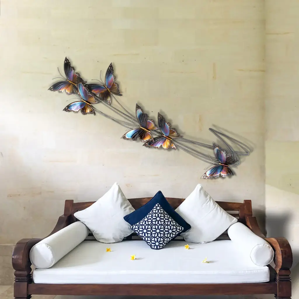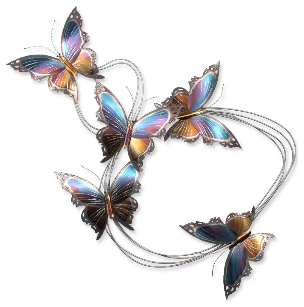 Enjoy the bliss of a beautifully peaceful sanctuary with our Flight Path II, a stunningly handcrafted primitive metal wall art piece to add to your modern farmhouse home decor. Measuring in at 68in x 22in x 4in overall, this contemporary butterfly art is carefully crafted from formed, ground and painted metal, boasting creative detail, attractive depth and dimension, and artistic embellishments, all designed by the inspired artist Mark Malizia. This stainless steel nature wall decor is hand-painted in metallic hues of silver, blue, burnt red, burnt orange, and other subtle color variations and textures; unique enough to stand alone, yet versatile enough to complement your existing decorations and home furnishings. If you are looking for modern farmhouse decorating ideas, this pleasantly primitive piece is recommended for indoor and covered outdoor placement, and would make a beautiful display in your kitchen, dining room, living room, nursery or bathroom with farmhouse, country western, or rustic primitive themes, with a bit of a contemporary flair.Eye-Catching from Every Angle: Extra Large sized stainless steel wall sculpture. 68W x 22H x 4D (inches) overall. Individually cut, crafted, ground and painted modern farmhouse home decor.Experienced Artisan Techniques: Carefully handcrafted with over 30 years of experience. Designed in Florida, USA by Mark Malizia. Fine details may vary slightly from the photograph, as is the charm and character of handmade goods.Priceless Peace of Mind: Crafted from hand-selected materials, specifically tested for quality and durability. Each piece is individually handled and carefully inspected prior to shipping. Includes conditional 1 Year Manufacturer''s Warranty.Simple Hanging: Lightweight material, hangs easily from loops/brackets on back. Mounts securely to the wall using household nails, screws, or hooks. Recommended placement in living room, dining room, kitchen, bedroom or bathroom.Versatile & Low-Maintenance: Suitable for indoor and covered outdoor use. Easy cleaning, simply dust with a duster or wipe with soft/clean cotton cloth. Avoid chemicals and cleaners, dampen cloth with warm water and mild hand/dish soap, only if needed.Note from the Makers: We are all about quality work & happy customers. We are eager to work with you on any questions, concerns or customizations.