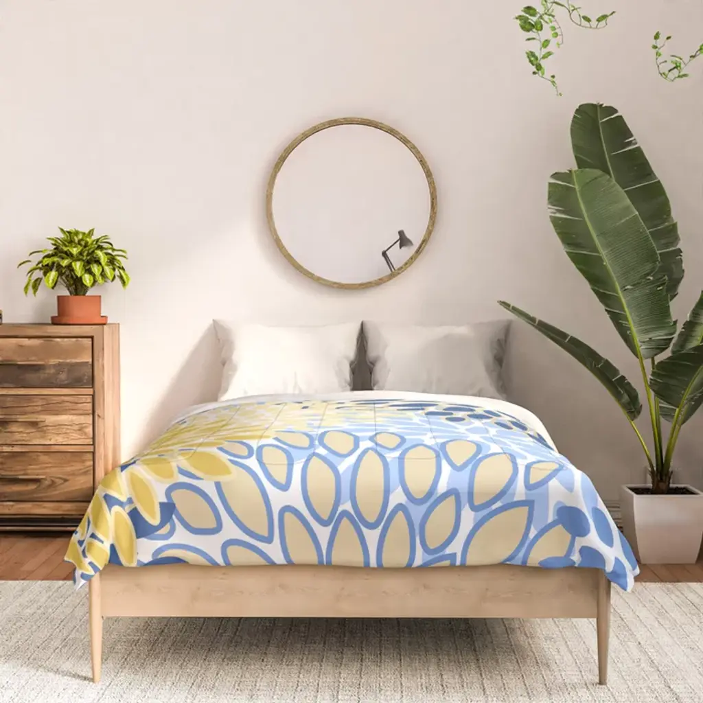 Modern, Floral Prints, Summer, Yellow And Blue Comforter