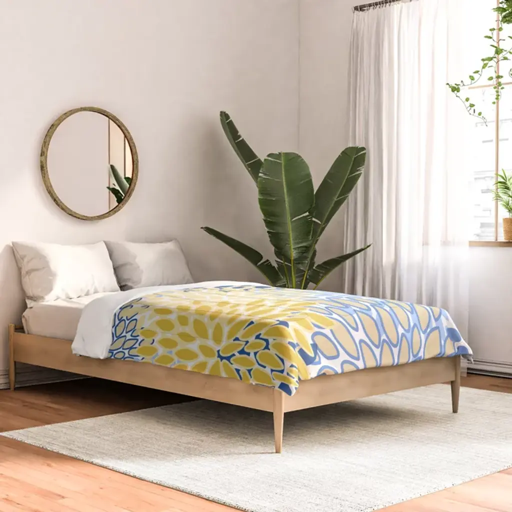 Modern, Floral Prints, Summer, Yellow And Blue Comforter