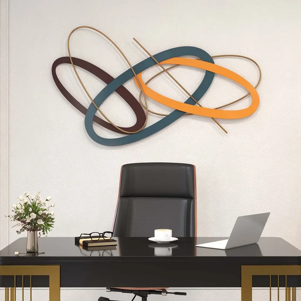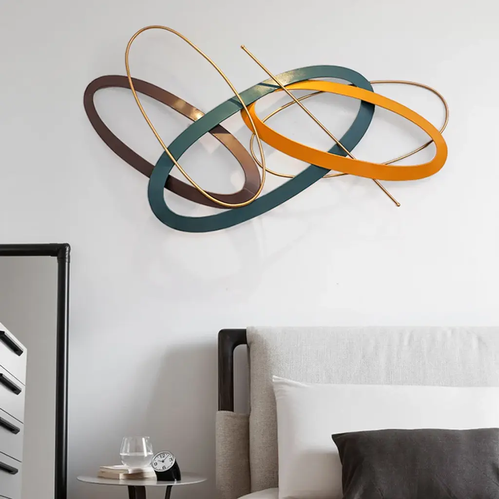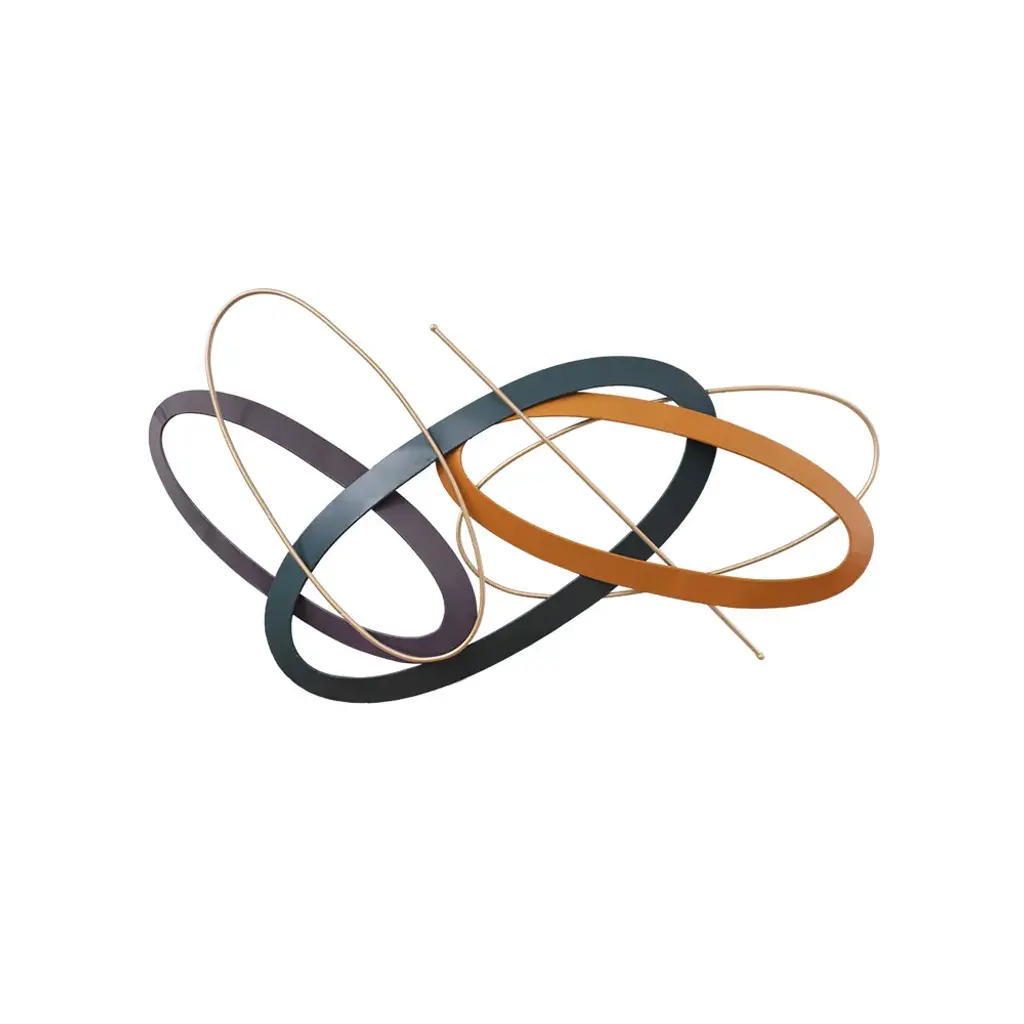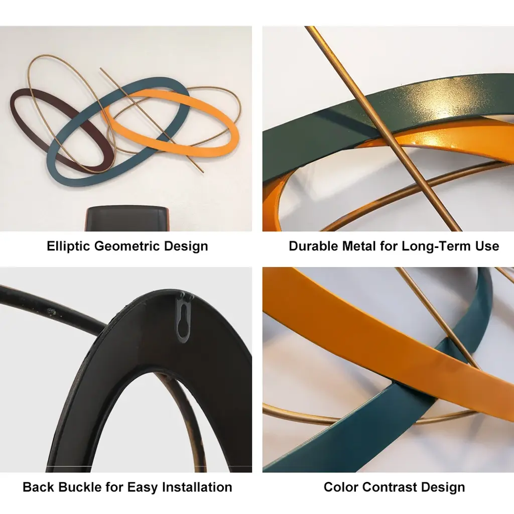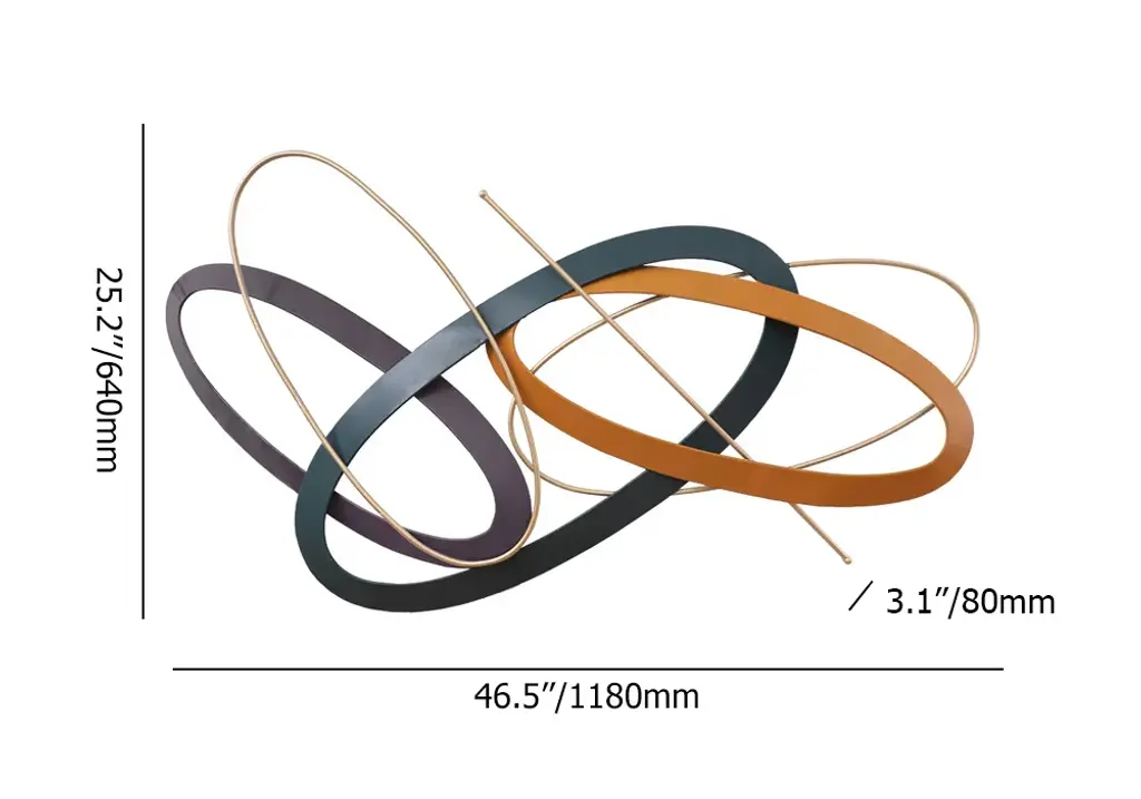 Add a bold artistic touch to your walls with this modern abstract wall art. Interlacing oval rings in gold, grey, green, and amber create a sculptural 3D effect that energizes your space. Made of durable metal with smooth lacquer, it transforms living rooms, dining areas, or offices with a striking modern vibe.