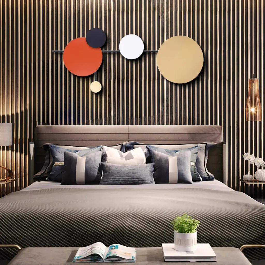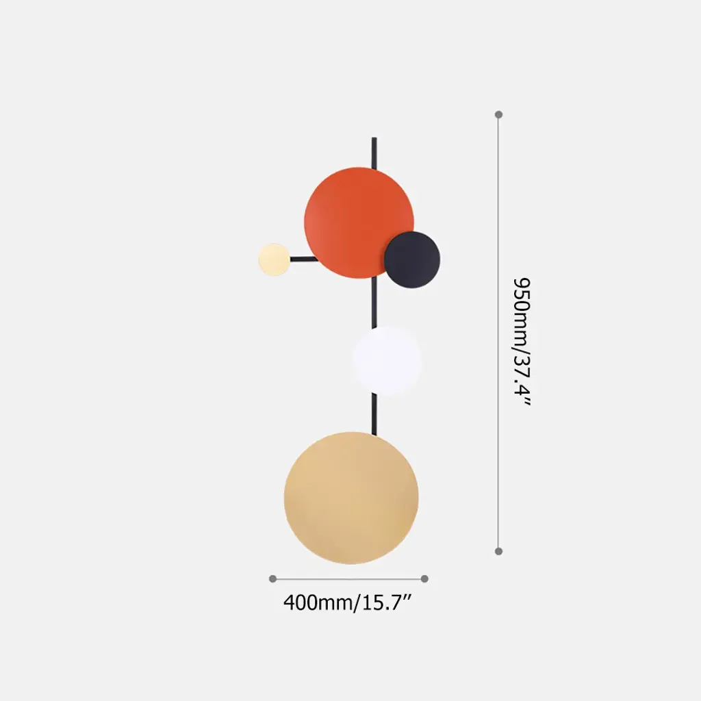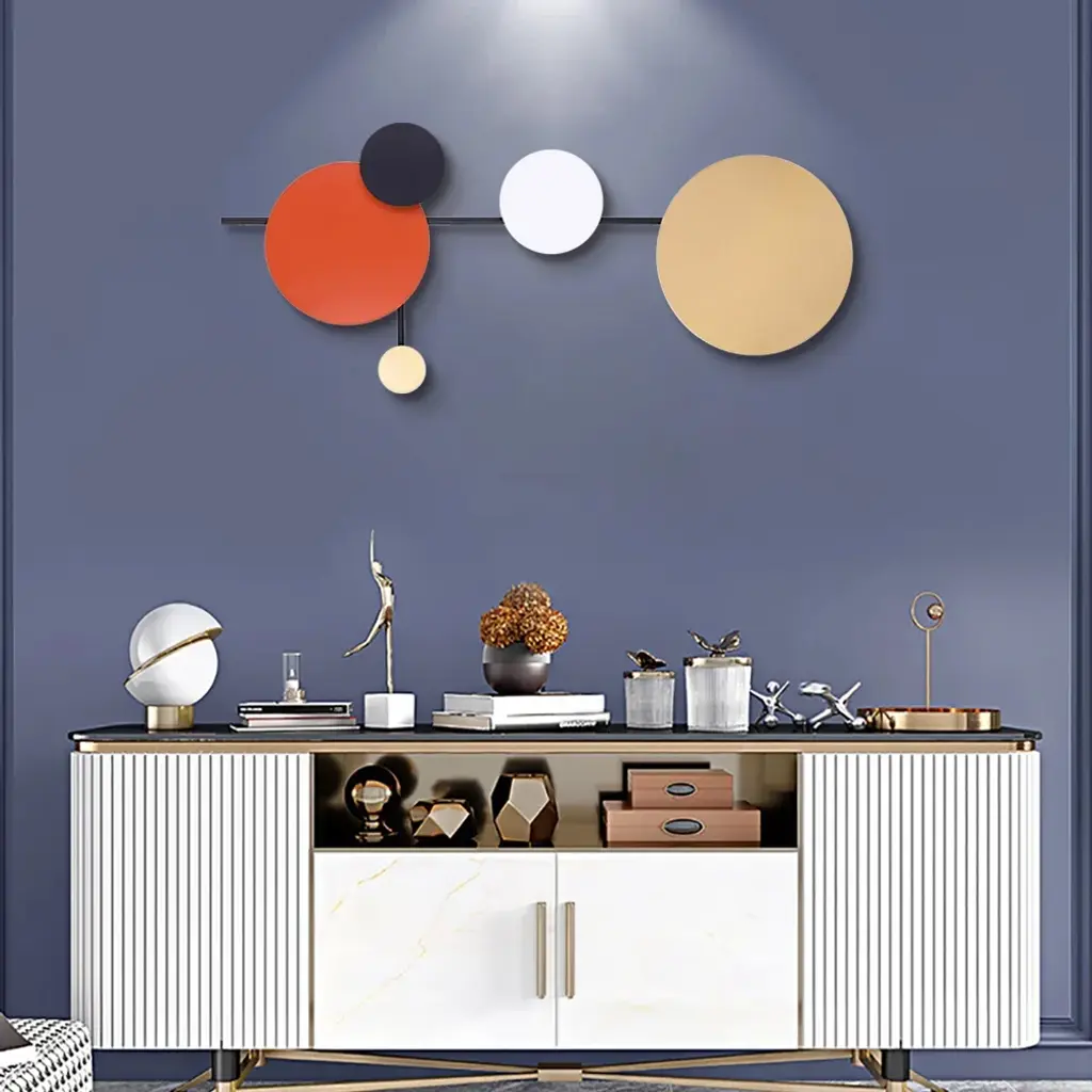Add a dash of visual intrigue and stylish sophistication to your ensemble with this eye-catching wall decor, the perfect piece for your well-curated aesthetic. It is crafted from iron and adopts a 3D iron art design, featuring colorful geometric rounds that are connected by black iron bars. The overall design brings a minimalist contemporary fashion art sense.