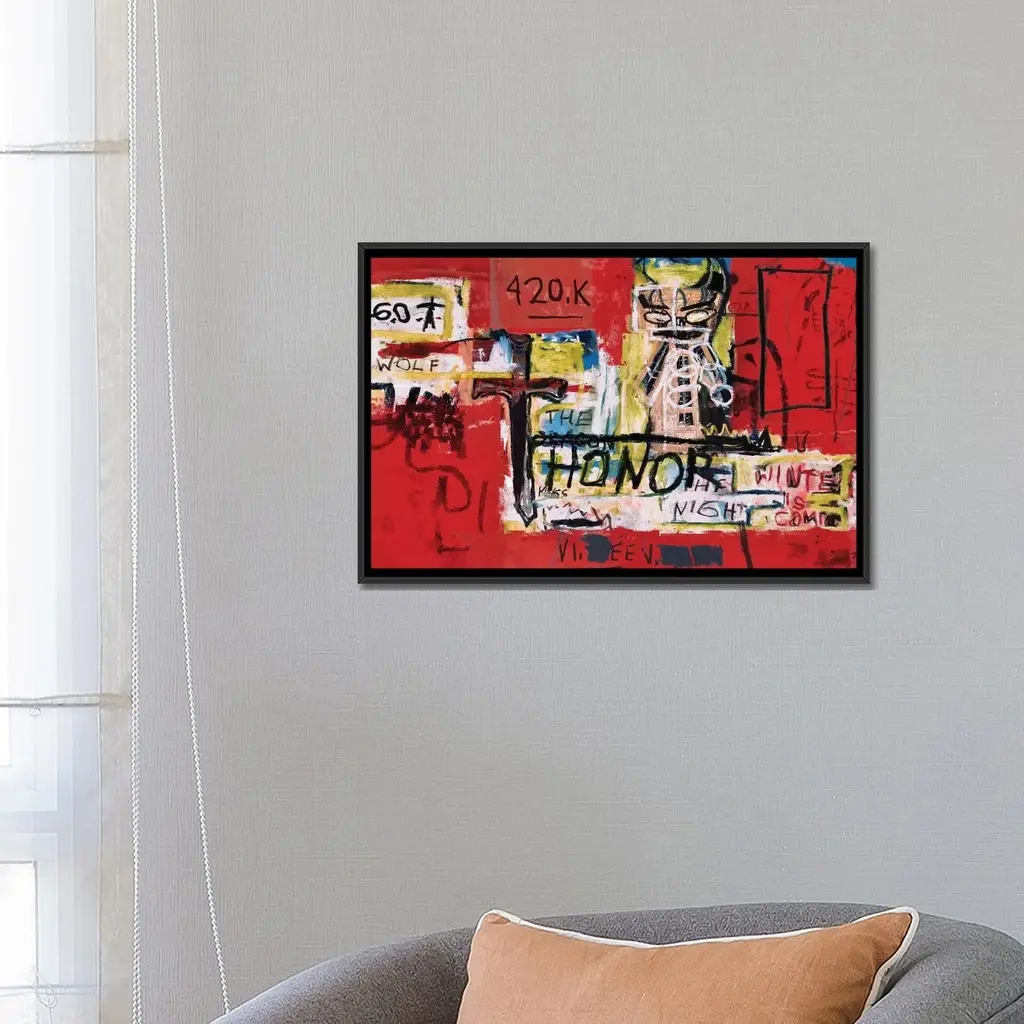 This modern abstract piece is heavily influenced by 80s artist Basquiat. Filled with color and creativity featuring multi-layers of drawings and typographic elements to create an entirely modern and edgy piece. This artwork has been printed on plexiglass and is a limited-edition piece by artist Harley, part of our curated collection with our partners Cobra Art.