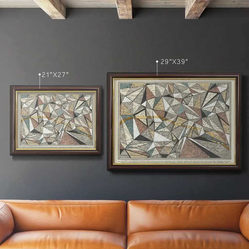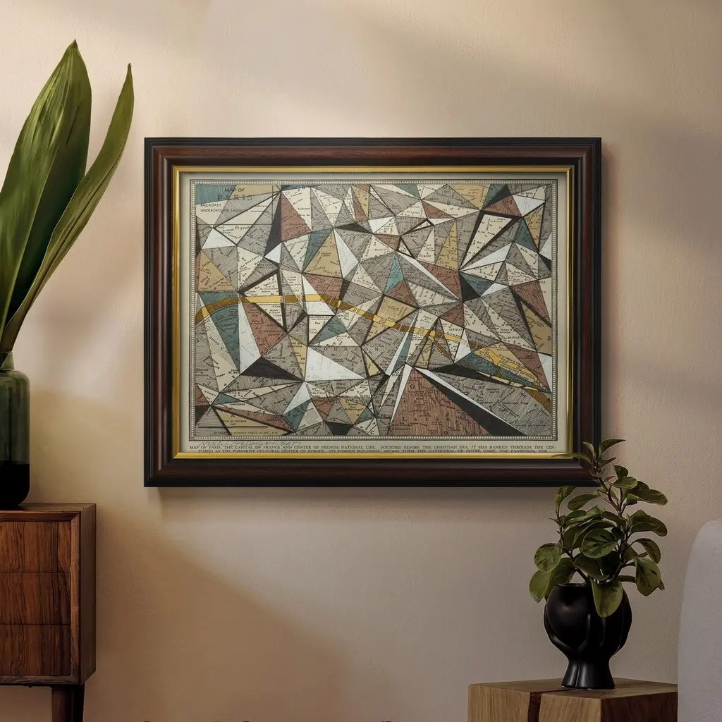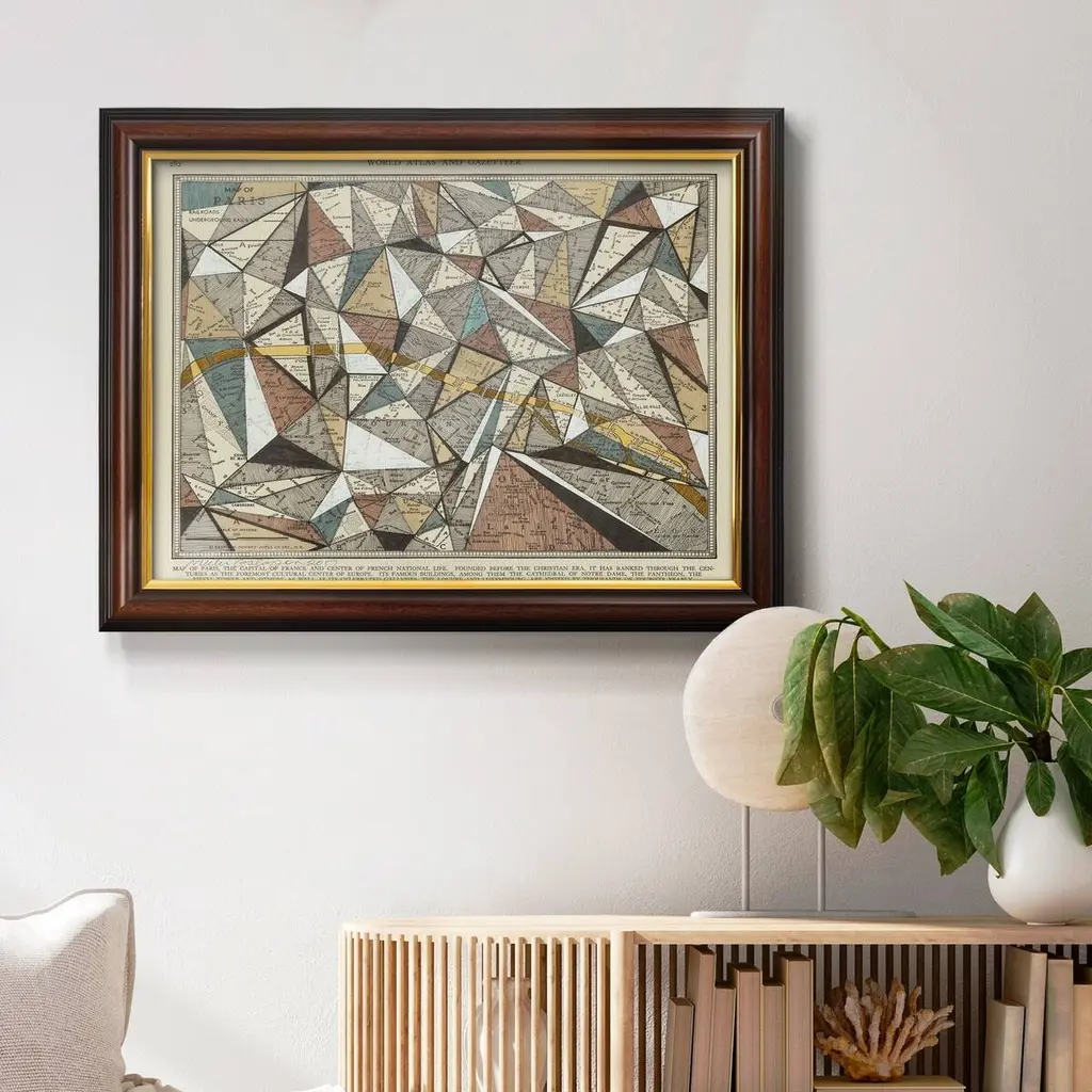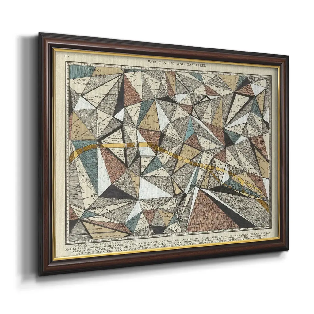 Modern Map of Paris Premium Framed Canvas- Ready to Hang A Premium Framed Canvas created to last. Framed in distressed wood and available in an array of sizes and colors Featuring a beveled a solid wood stretcher bar, each piece comes ready to hand 3 SIZES AVAILABLE 16''X20'' - Overall Size 18'X27'' - Overall Size 24''x36'' - Overall Size Each piece is made to order. Each piece comes with hanging hardware. Made in the USA Ready to Hang Giclee Paper Print Acrylic Glass Beveled Matt Board