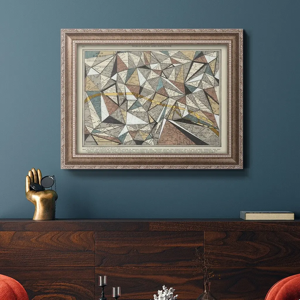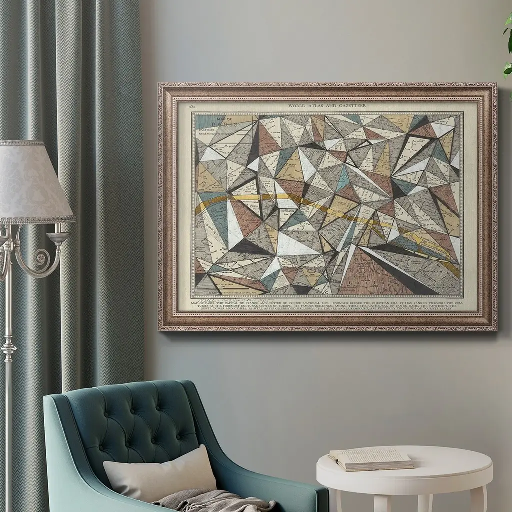 Modern Map of Paris Premium Framed Canvas- Ready to Hang A Premium Framed Canvas created to last. Framed in distressed wood and available in an array of sizes and colors Featuring a beveled a solid wood stretcher bar, each piece comes ready to hand 3 SIZES AVAILABLE 16''X20'' - Overall Size 18'X27'' - Overall Size 24''x36'' - Overall Size Each piece is made to order. Each piece comes with hanging hardware. Made in the USA Ready to Hang Giclee Paper Print Acrylic Glass Beveled Matt Board