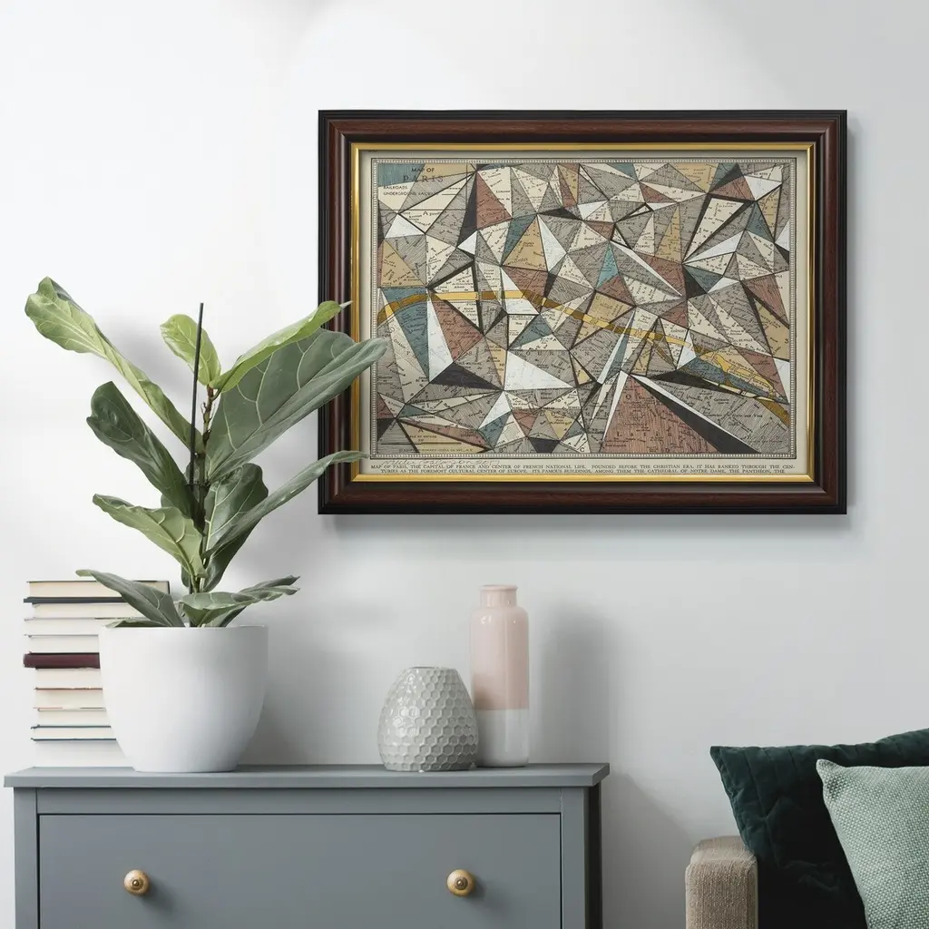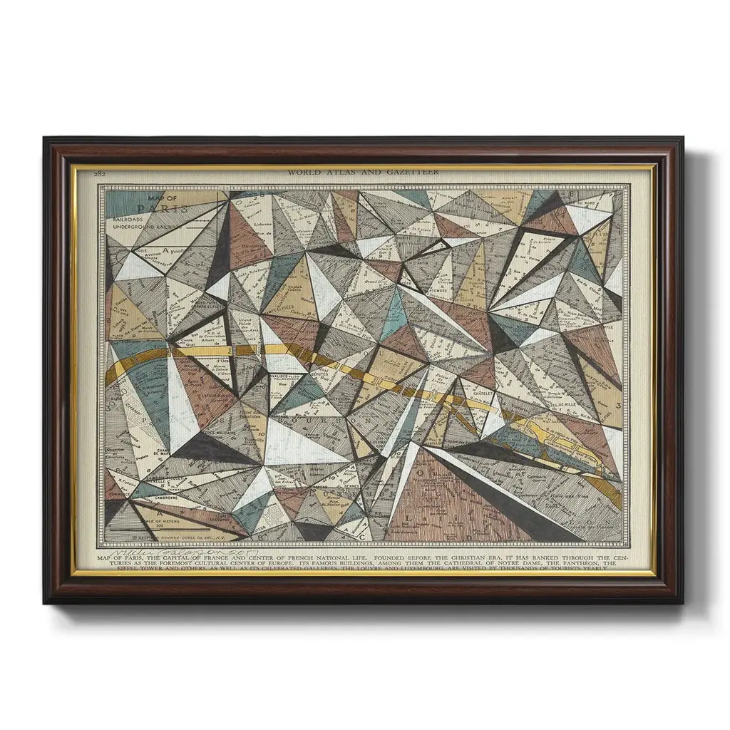 Modern Map of Paris Premium Framed Canvas- Ready to Hang A Premium Framed Canvas created to last. Framed in distressed wood and available in an array of sizes and colors Featuring a beveled a solid wood stretcher bar, each piece comes ready to hand 3 SIZES AVAILABLE 16''X20'' - Overall Size 18'X27'' - Overall Size 24''x36'' - Overall Size Each piece is made to order. Each piece comes with hanging hardware. Made in the USA Ready to Hang Giclee Paper Print Acrylic Glass Beveled Matt Board